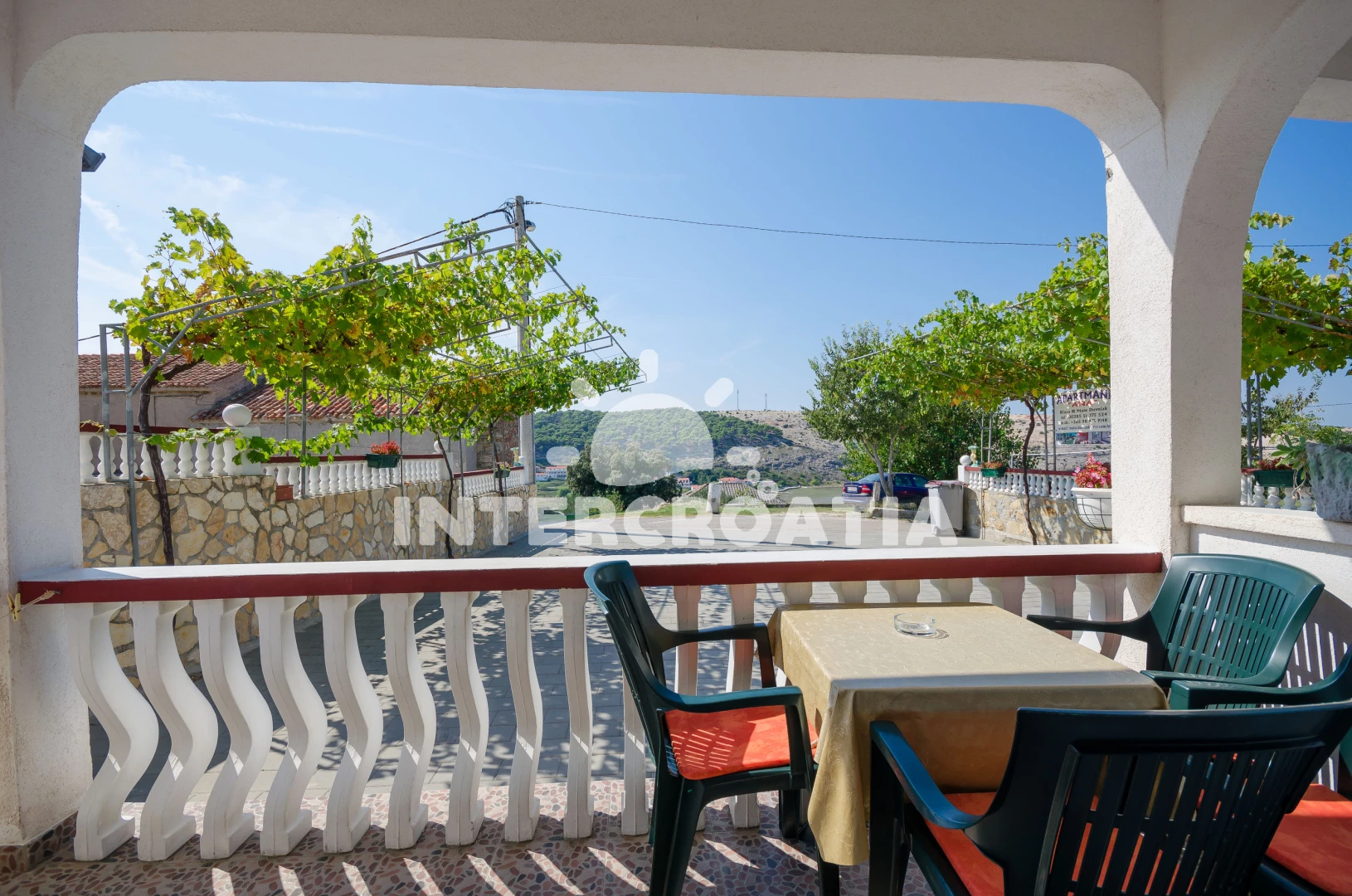 Vzdálenosti: Moře 250 m, pláž 300 m (písek), centrum 250 m, směnárna 300 m, bar 300 m, supermarket 300 m, veřejná doprava 300 m, restaurace 300 m, pošta 300 m, lékárna 400 m, trajekt (Lopar) 1 km, mini golf 1 km, potápění 1 km, kotviště pro čluny 1 km, tenisové kurty 1 km, ambulance 1 km, půjčovna kol 1 km, diskotéka 1 km, půjčovna motorových člunů 1 km, čerpací stanice 2 km, muzeum 12 km, banka 12 km, letiště (Rijeka) 106 km,