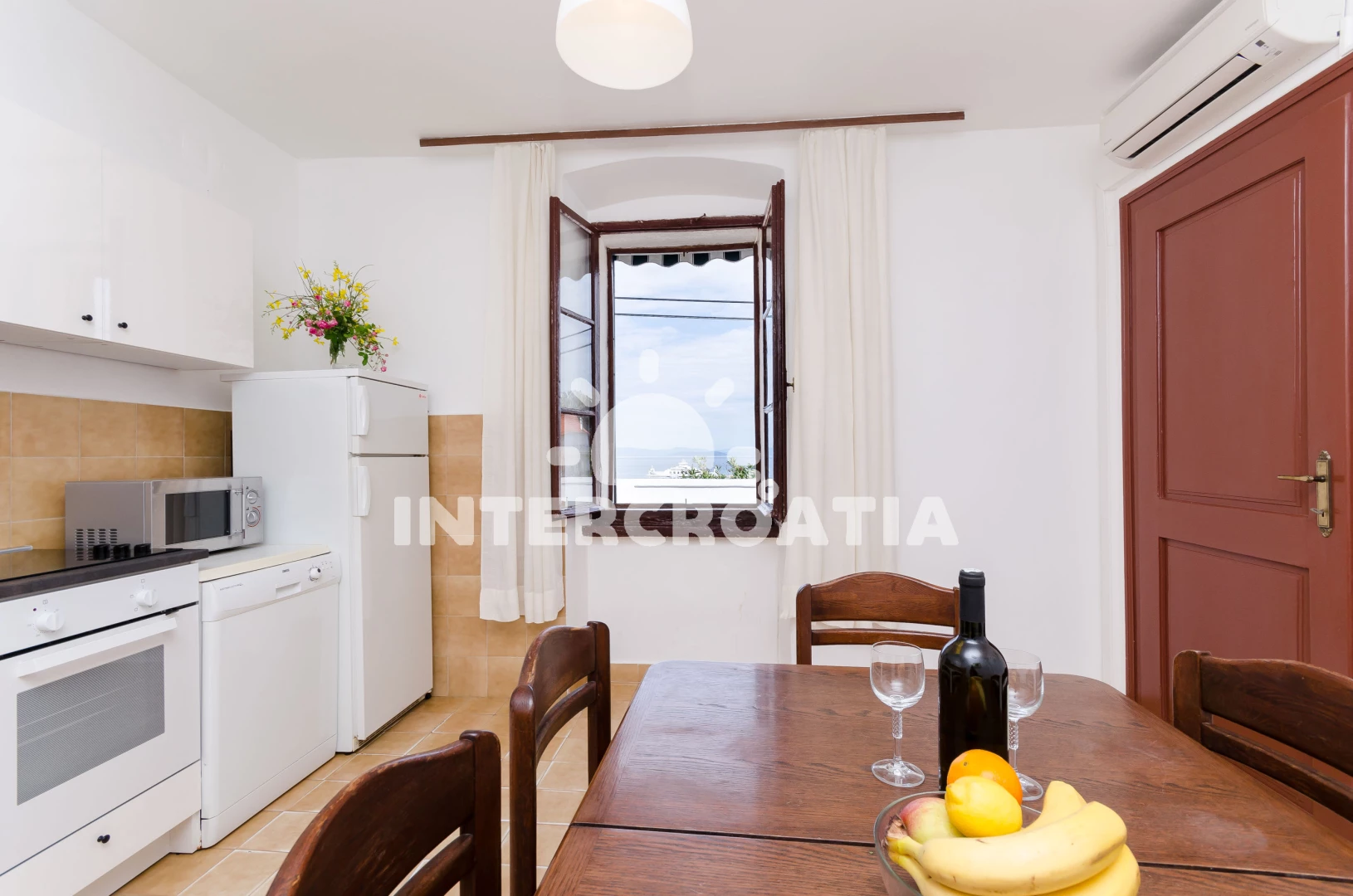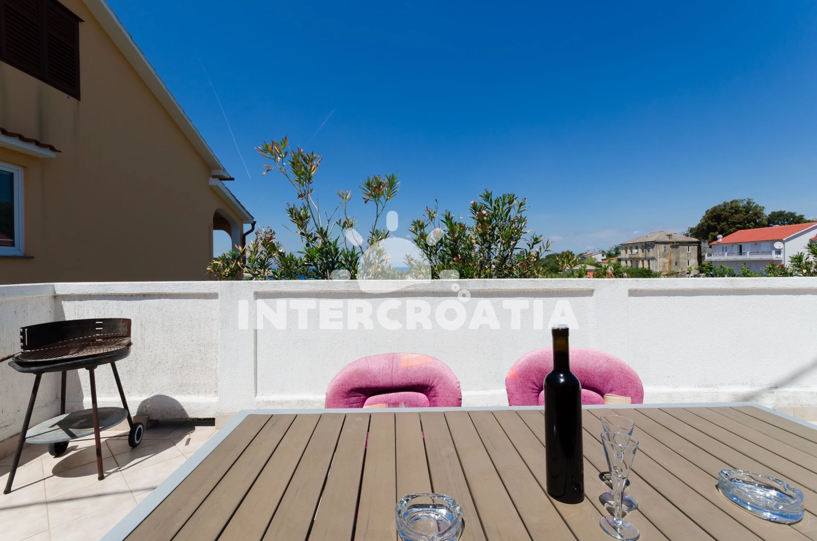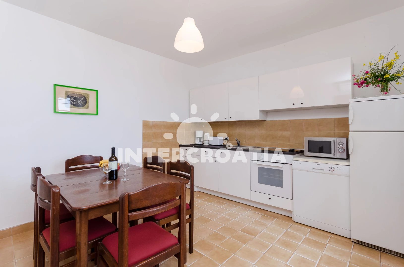 Apartmán (80 m2) s balkonem, a výhledem na moře. Nachází se v 1. patře objektu. Apartmán má 2 ložnice a je vhodný pro až 6 osob. Kuchyňská linka je vybavena varnou deskou, toustovačem, troubou,…