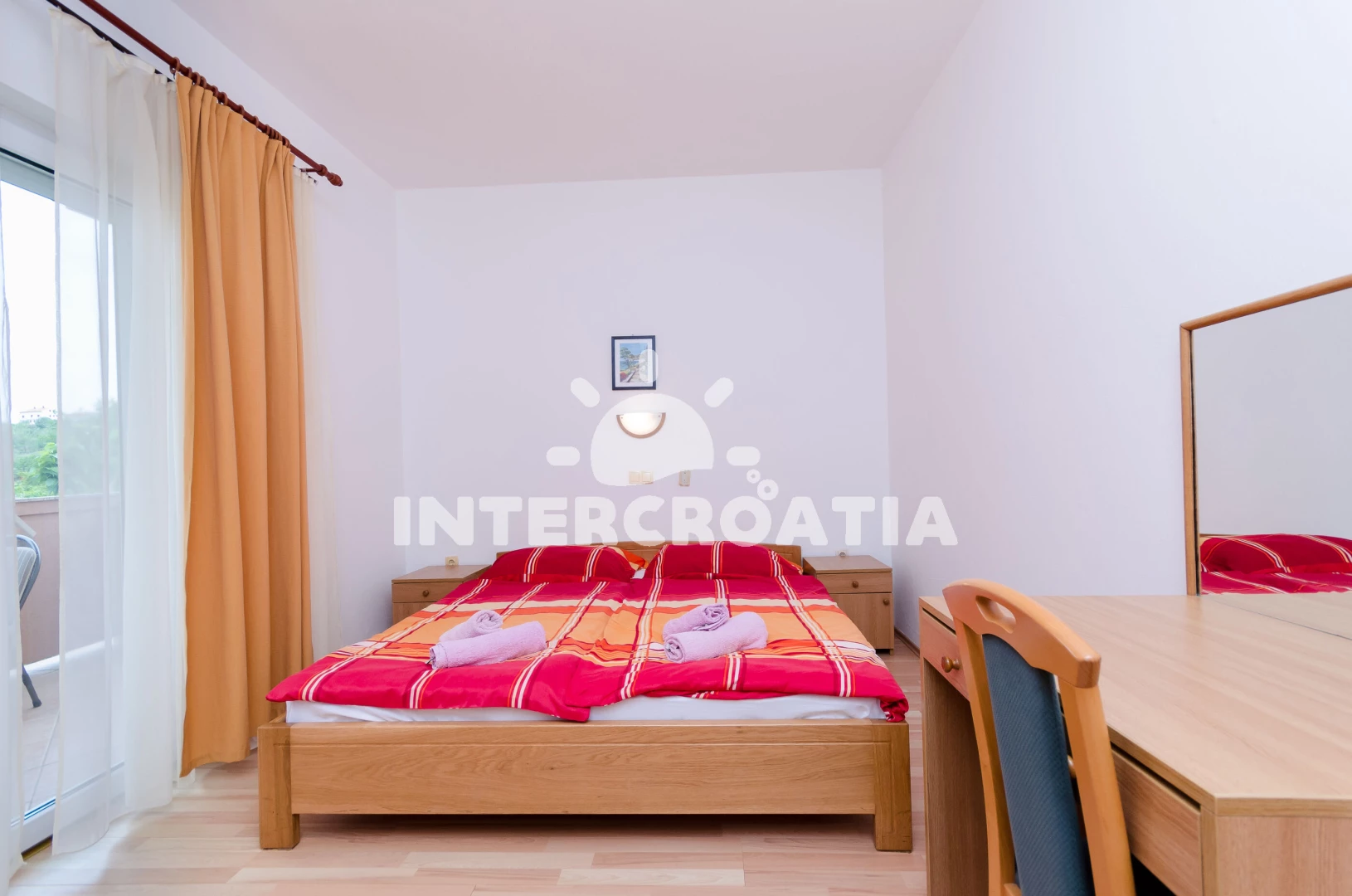 Vzdálenosti: Moře 800 m, pláž 800 m (písek), lékárna 200 m, směnárna 300 m, supermarket 350 m, bar 400 m, pošta 400 m, centrum 400 m, ambulance 600 m, restaurace 600 m, veřejná doprava 800 m, půjčovna motorových člunů 800 m, půjčovna kol 800 m, mini golf 900 m, tenisové kurty 900 m, potápění 1 km, čerpací stanice 1,2 km, trajekt 1,2 km, banka 12 km, muzeum 12 km,