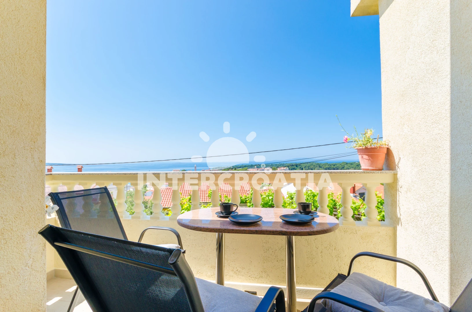 Apartmán (91 m2) s balkonem, a výhledem na moře. Nachází se v 1. patře objektu. Apartmán má 2 ložnice a je vhodný pro až 6 osob. Kuchyňská linka je vybavena varnou deskou, toustovačem, troubou,…