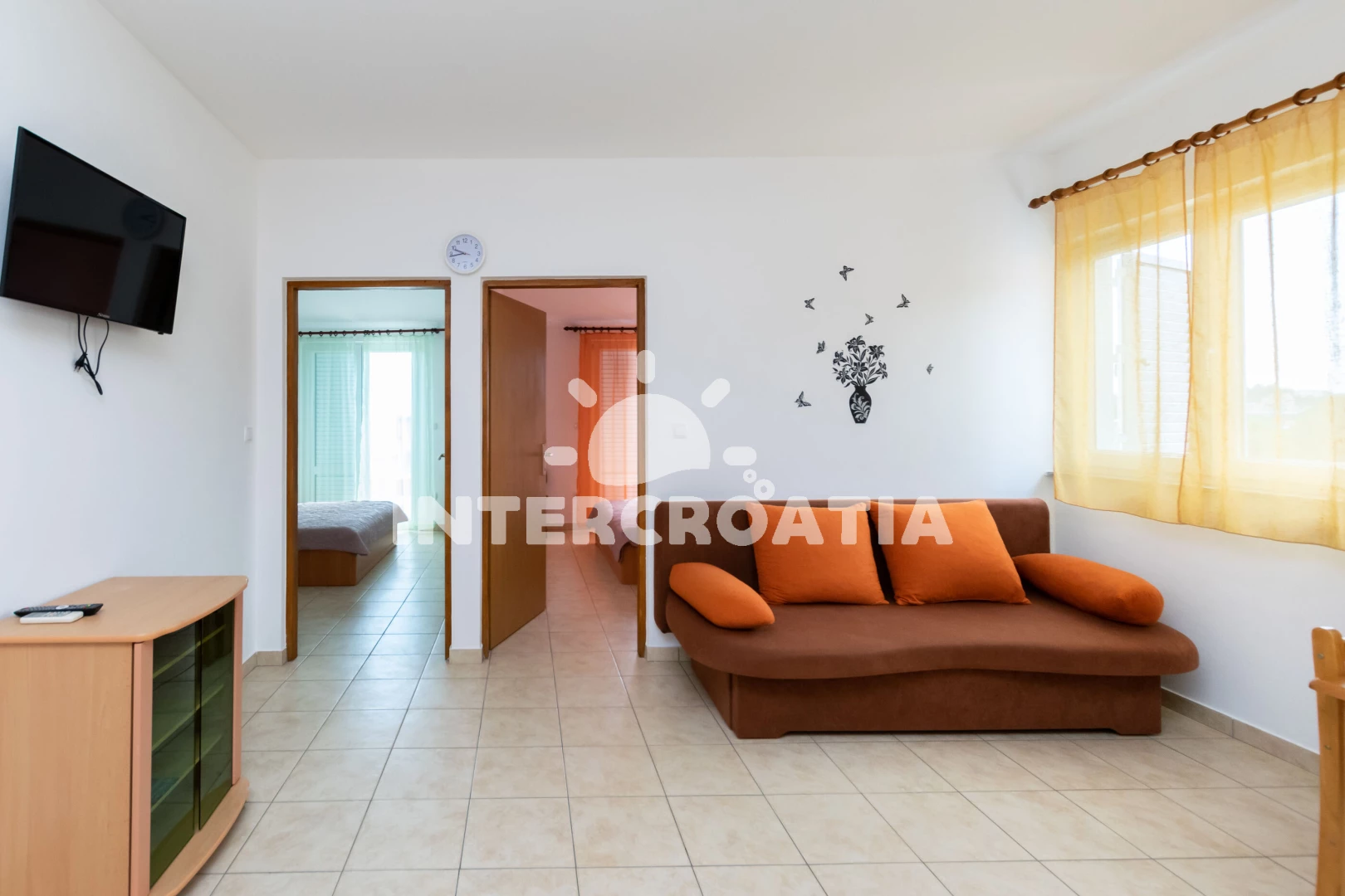 Apartmán se nachází 700 m od moře a pláže. Pláž je oblázková a betonové desky. U objektu je k dispozici společná zahrada s posezením a grilem. Parkování je před domem.