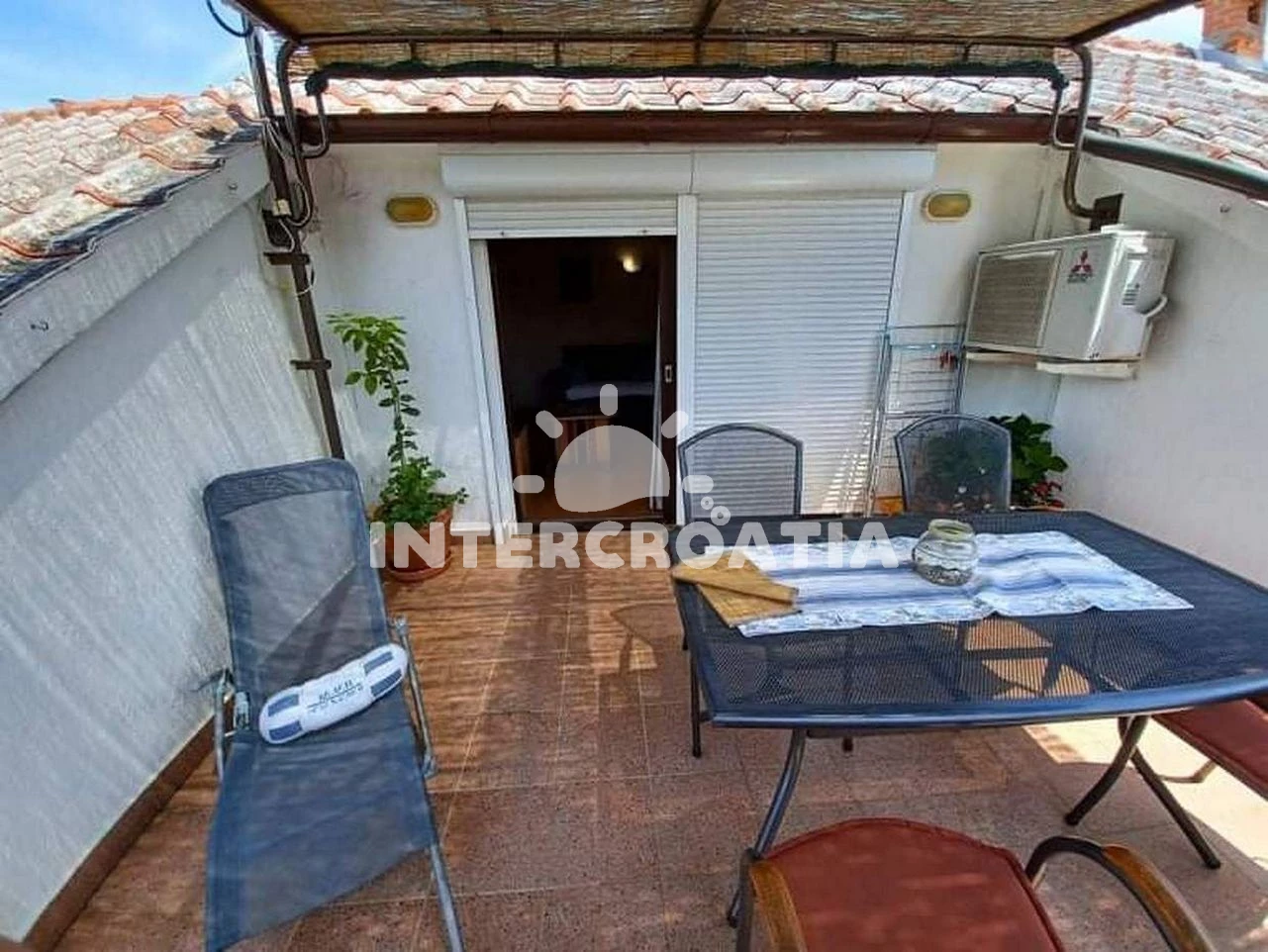 Apartmán se nachází 100 m od moře a pláže. Pláž je oblázková a betonové desky. U objektu je k dispozici společná zahrada s posezením a grilem.