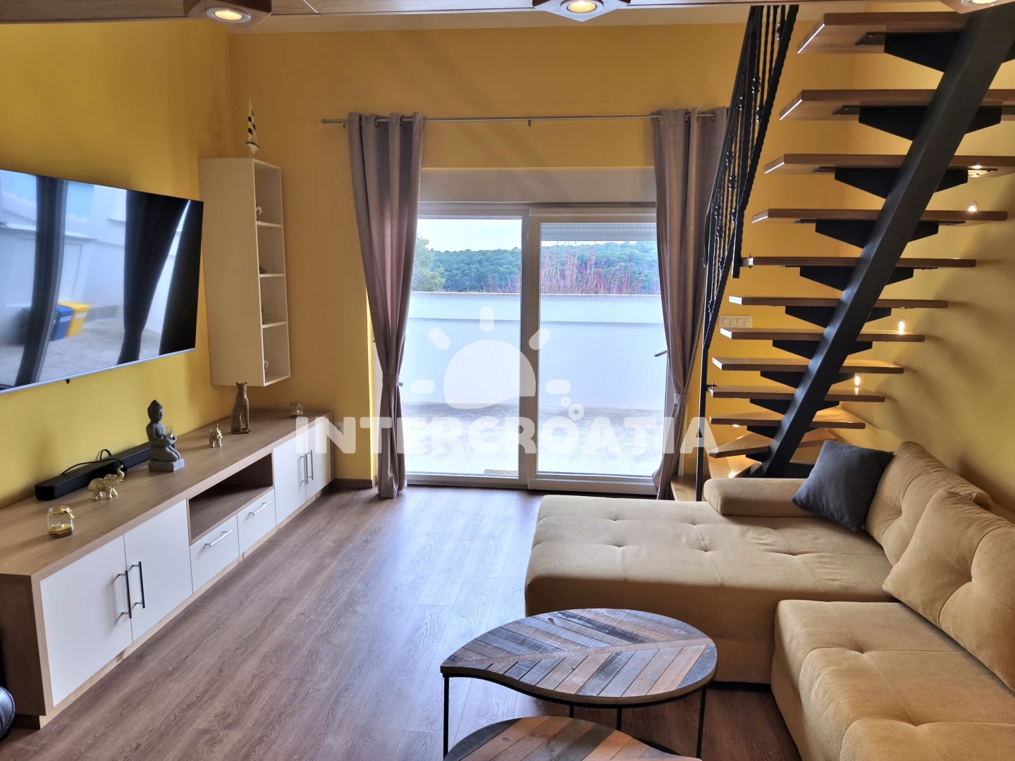Apartmán (130 m2) s terasou, s balkonem, a výhledem na moře. Nachází se ve dvou patrech objektu. Apartmán má 3 ložnice a je vhodný pro až 6 osob. Kuchyňská linka je vybavena varnou deskou, troubou,…