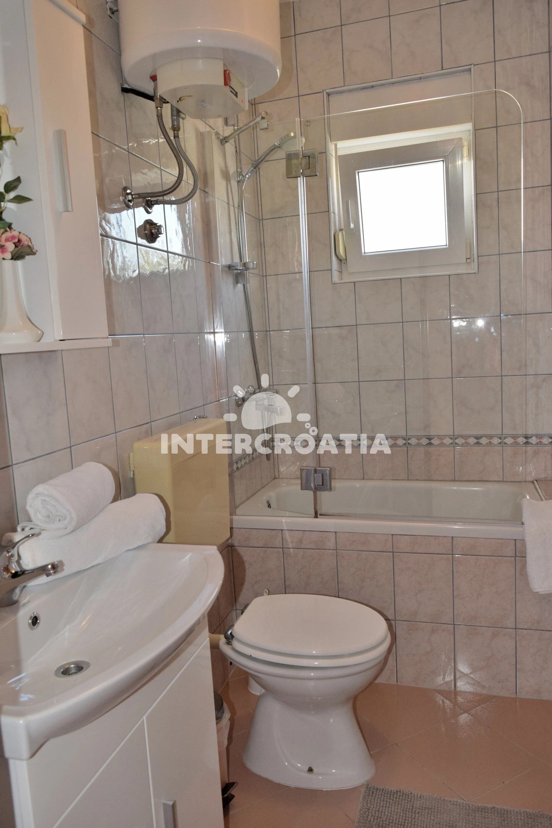 Vzdálenosti: Moře 760 m, pláž 1,4 km (písčitá a betonové desky), supermarket 500 m, bar 500 m, restaurace 500 m, centrum 1 km, lékárna 1 km, směnárna 1 km, pošta 1 km, marina 1,5 km, ambulance 2 km, čerpací stanice 2 km, banka 2 km, trajekt (Misnjak) 12 km,