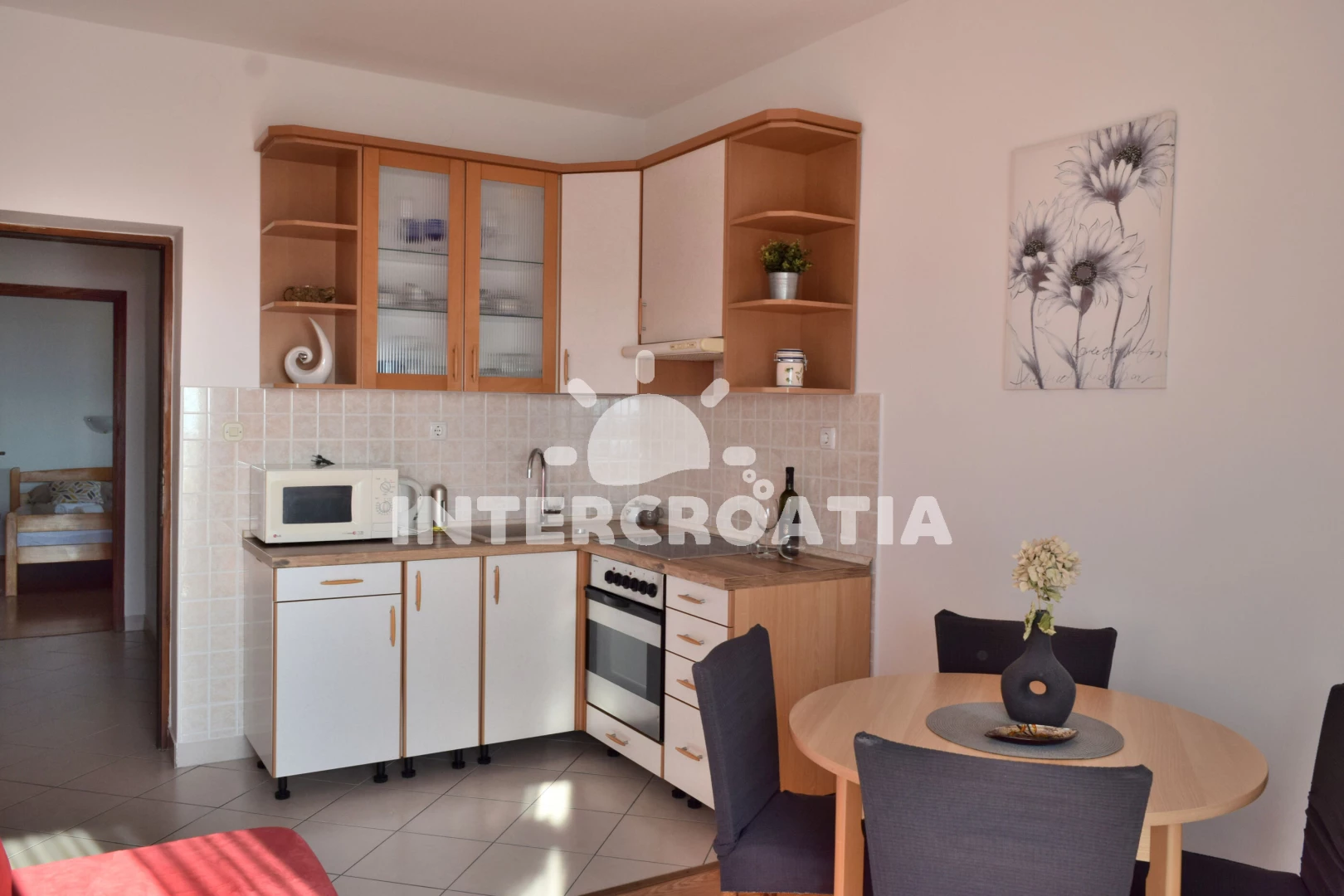 Vzdálenosti: Moře 760 m, pláž 1,4 km (písčitá a betonové desky), supermarket 500 m, bar 500 m, restaurace 500 m, centrum 1 km, lékárna 1 km, směnárna 1 km, pošta 1 km, marina 1,5 km, ambulance 2 km, čerpací stanice 2 km, banka 2 km, trajekt (Misnjak) 12 km,