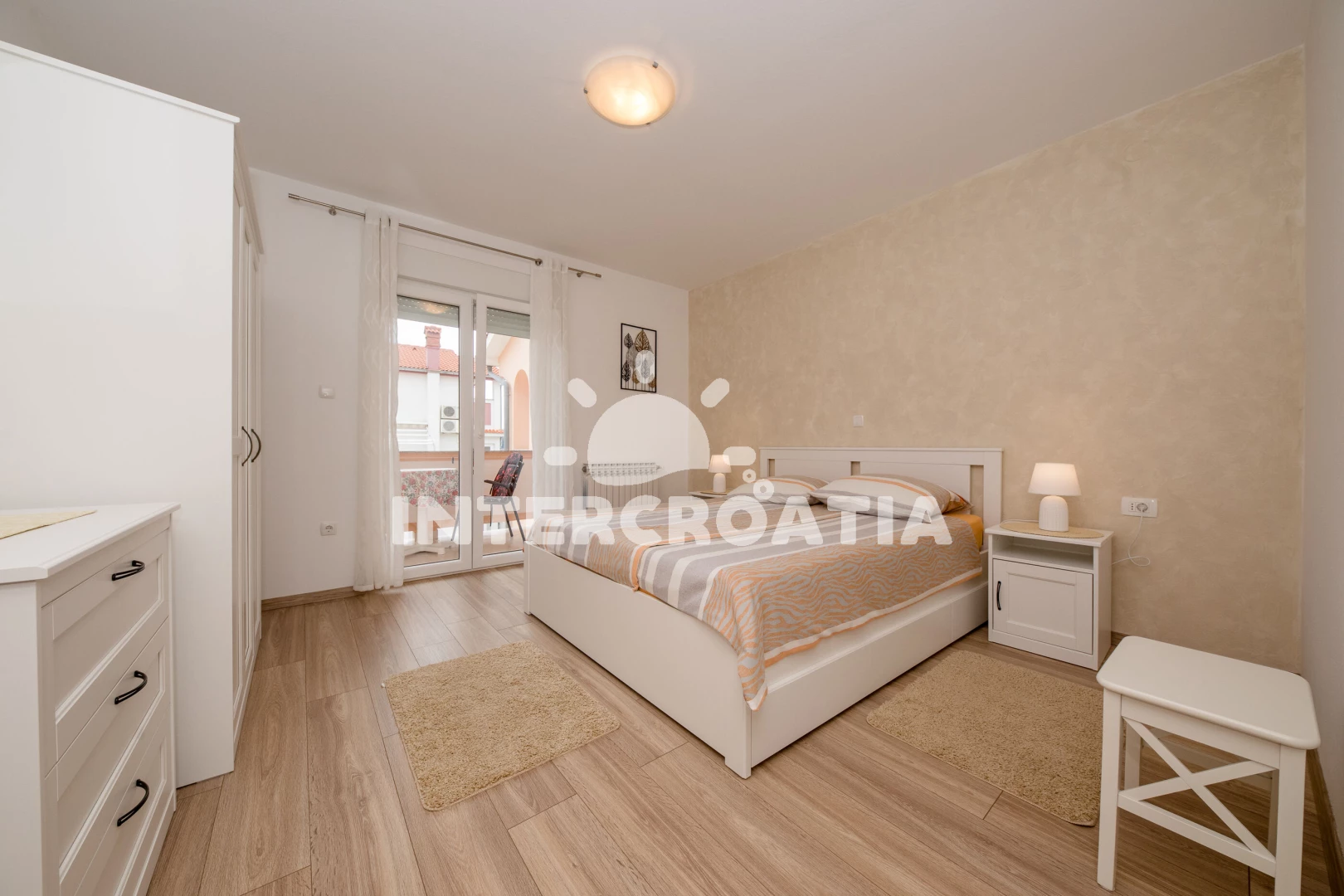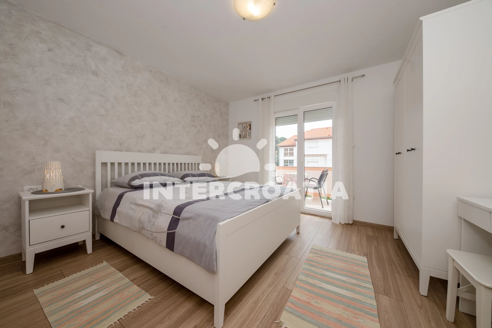 Apartmán (2) s balkonem, s terasou. Nachází se v objektu. Apartmán má 2 ložnice a je vhodný pro až 2 osoby. Kuchyňská linka je vybavena varnou deskou, troubou, kávovarem, myčkou na nádobí, rychlovarnou konvicí, nádobím, lednicí, mrazákem. K dispozici televize, radio, žehlička. První ložnice s dvoulůžky. Druhá ložnice s dvoulůžky.