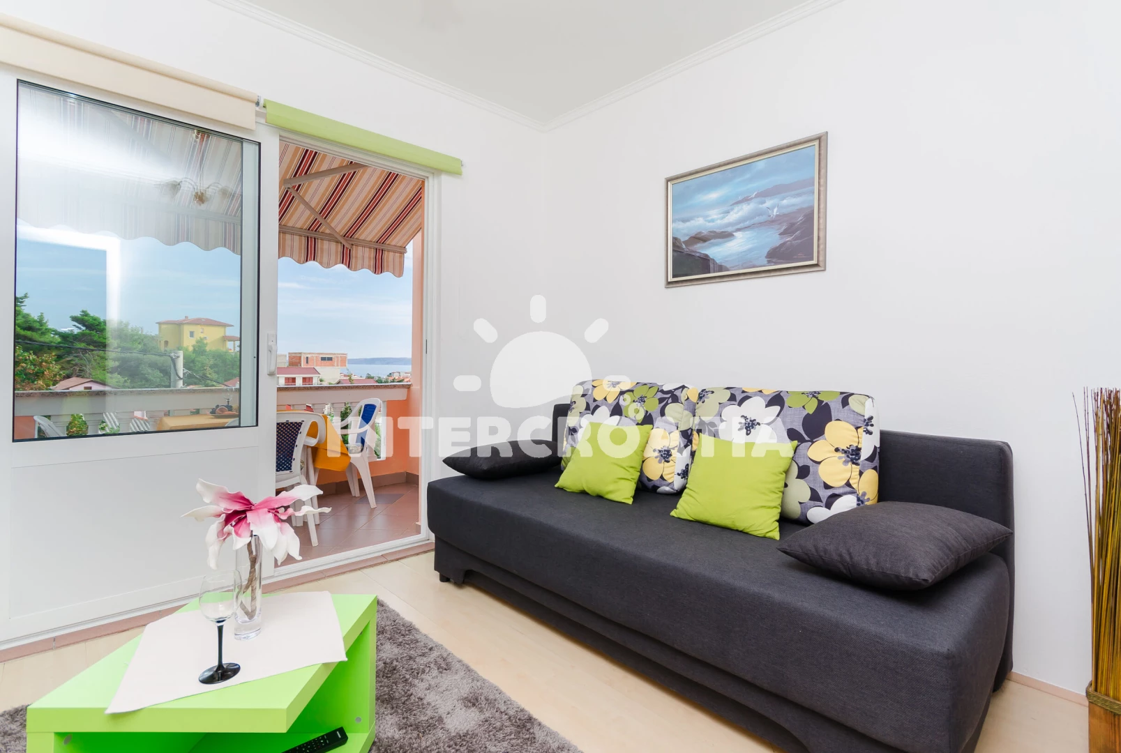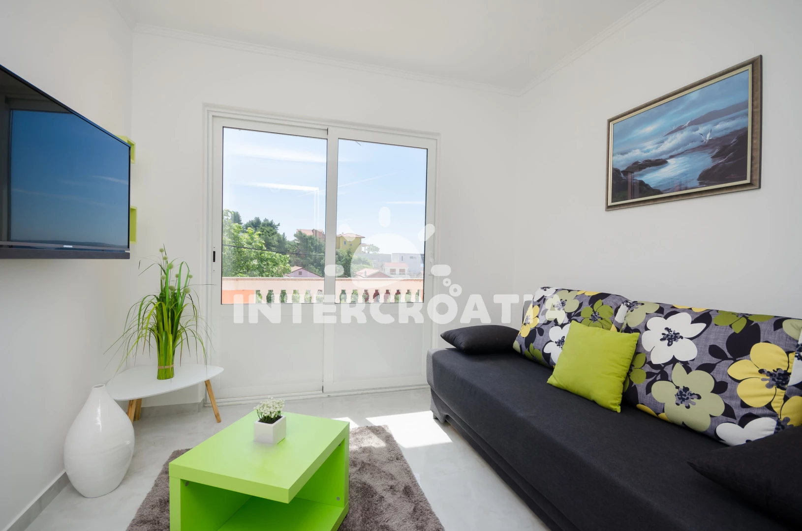 Vzdálenosti: kotviště pro čluny 0 m, Moře 750 m, pláž 750 m (oblázková a betonové desky), supermarket 100 m, veřejná doprava 100 m, ambulance 200 m, restaurace 200 m, bar 200 m, pošta 200 m, lékárna 200 m, směnárna 200 m, banka 200 m, mini golf 300 m, diskotéka 300 m, muzeum 300 m, centrum 300 m, tenisové kurty 300 m, čerpací stanice 300 m, půjčovna motorových člunů 300 m, marina 300 m, potápění 300 m, půjčovna kol 300 m, trajekt (Misnjak) 7 km, letiště (Rijeka) 70 km,