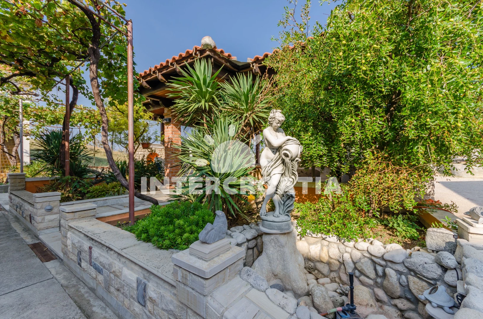 Apartmán se nachází 750 m od moře a pláže. Pláž je oblázková a betonové desky. Apartmán disponuje bazénem s lehátky pro ubytované hosty. U objektu je k dispozici společná zahrada s posezením a grilem. Parkování je před domem.