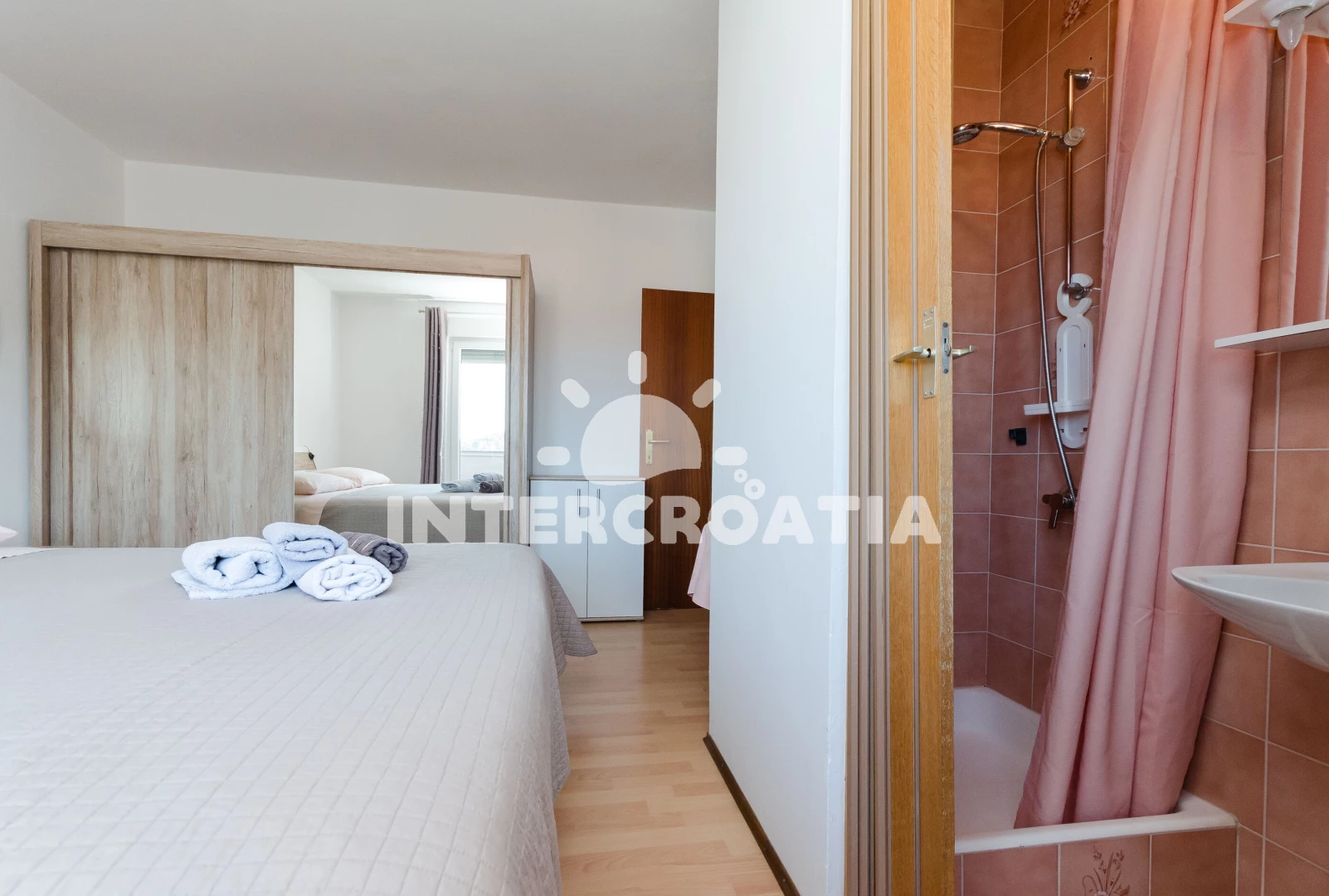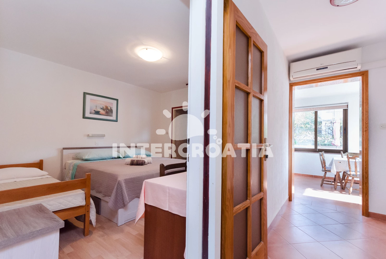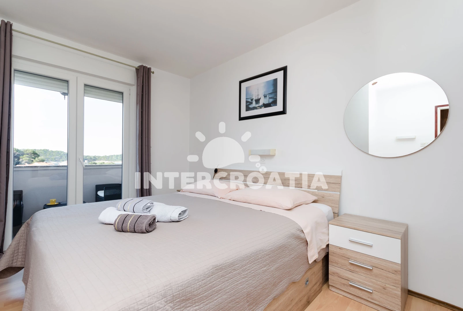 Vzdálenosti: Moře 200 m, pláž 200 m (písčitá a oblázková), restaurace 50 m, půjčovna motorových člunů 200 m, bar 200 m, veřejná doprava 200 m, kotviště pro čluny 200 m, ambulance 200 m, tenisové kurty 200 m, mini golf 200 m, supermarket 250 m, lékárna 250 m, centrum 300 m, směnárna 300 m, banka 350 m, pošta 400 m, čerpací stanice 1 km, muzeum 1 km, půjčovna kol 1 km, marina 1 km, diskotéka 1,2 km, potápění 3 km, trajekt (Misnjak) 9 km,