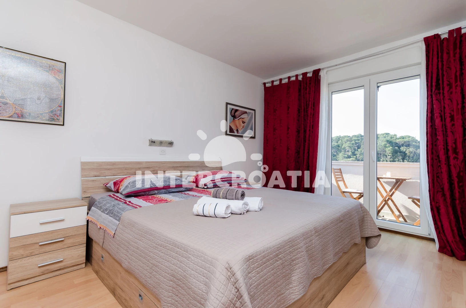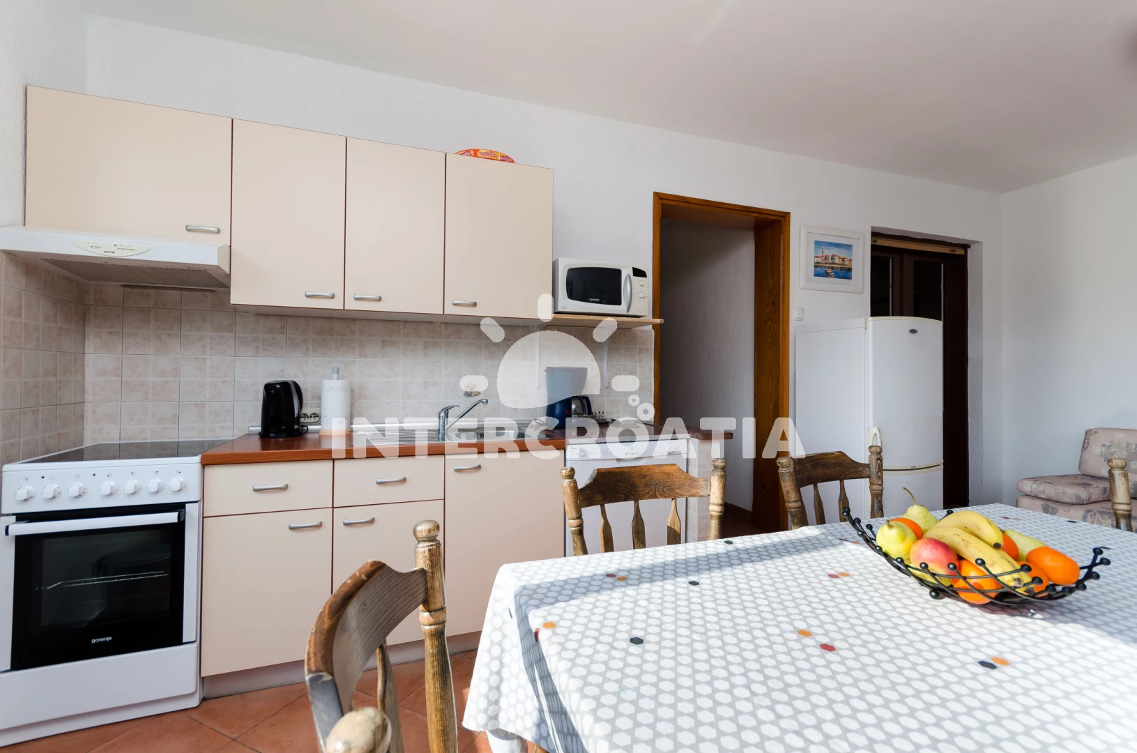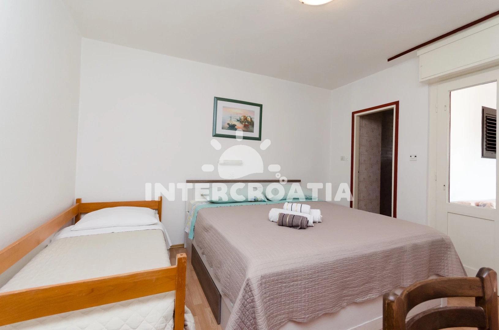 Vzdálenosti: Moře 200 m, pláž 200 m (písčitá a oblázková), restaurace 50 m, půjčovna motorových člunů 200 m, bar 200 m, veřejná doprava 200 m, kotviště pro čluny 200 m, ambulance 200 m, tenisové kurty 200 m, mini golf 200 m, supermarket 250 m, lékárna 250 m, centrum 300 m, směnárna 300 m, banka 350 m, pošta 400 m, čerpací stanice 1 km, muzeum 1 km, půjčovna kol 1 km, marina 1 km, diskotéka 1,2 km, potápění 3 km, trajekt (Misnjak) 9 km,