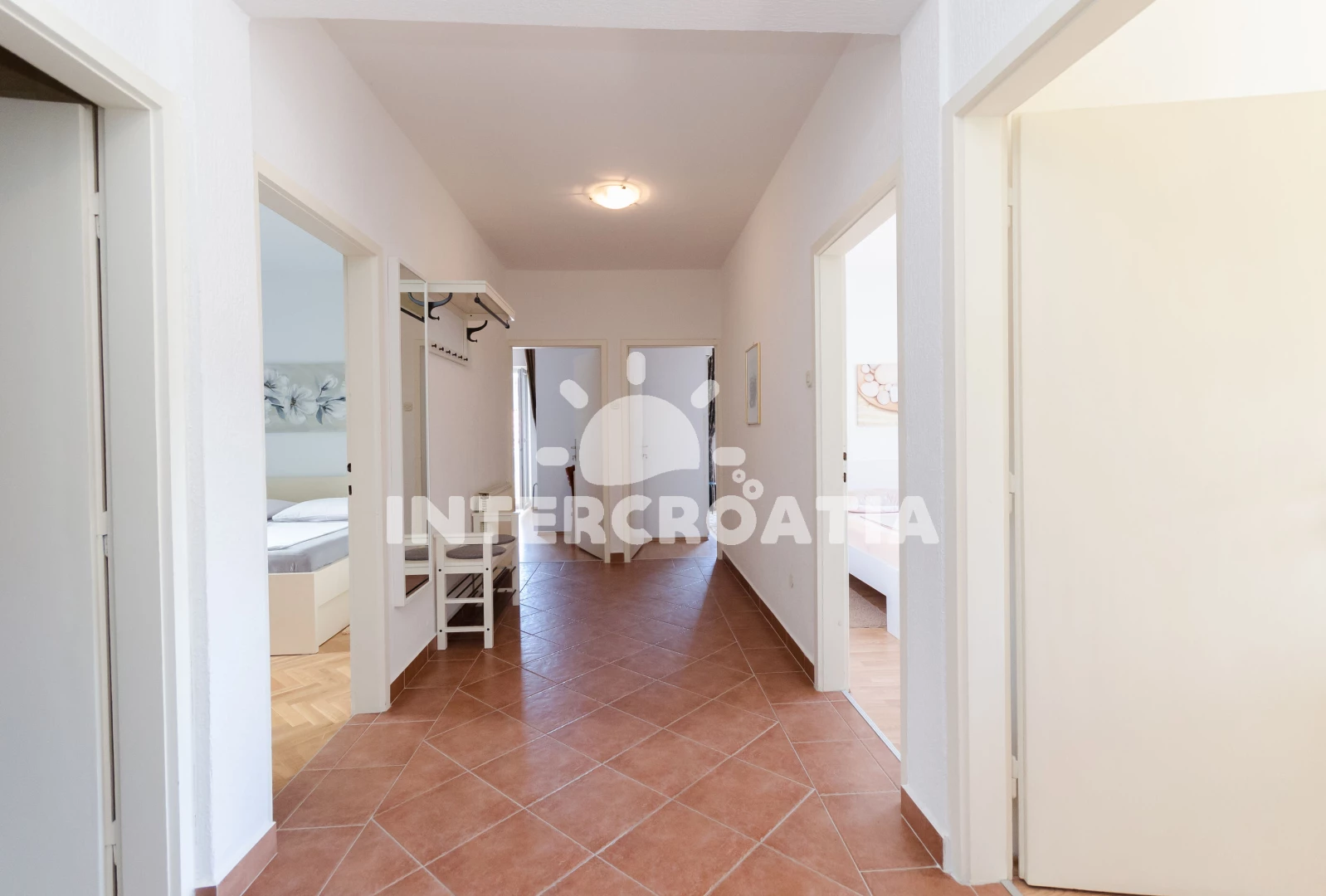 Vzdálenosti: Moře 150 m, pláž 200 m (písčitá a oblázková), supermarket 100 m, směnárna 100 m, půjčovna kol 150 m, půjčovna motorových člunů 200 m, restaurace 200 m, bar 200 m, marina 250 m, čerpací stanice 250 m, diskotéka 300 m, tenisové kurty 350 m, banka 400 m, muzeum 400 m, pošta 400 m, veřejná doprava 400 m, ambulance 500 m, lékárna 500 m, centrum 500 m,