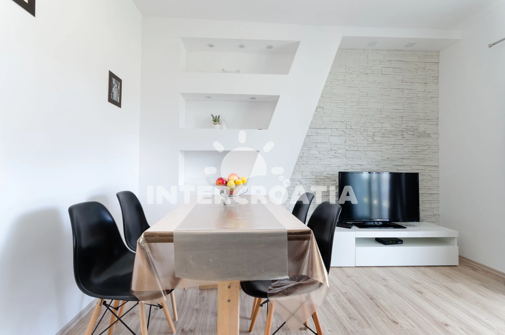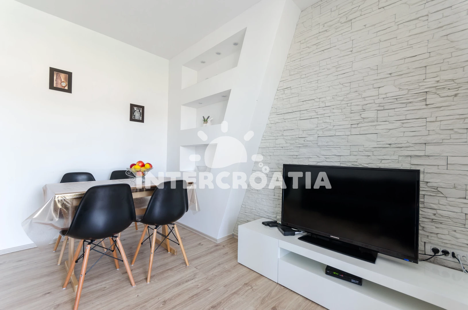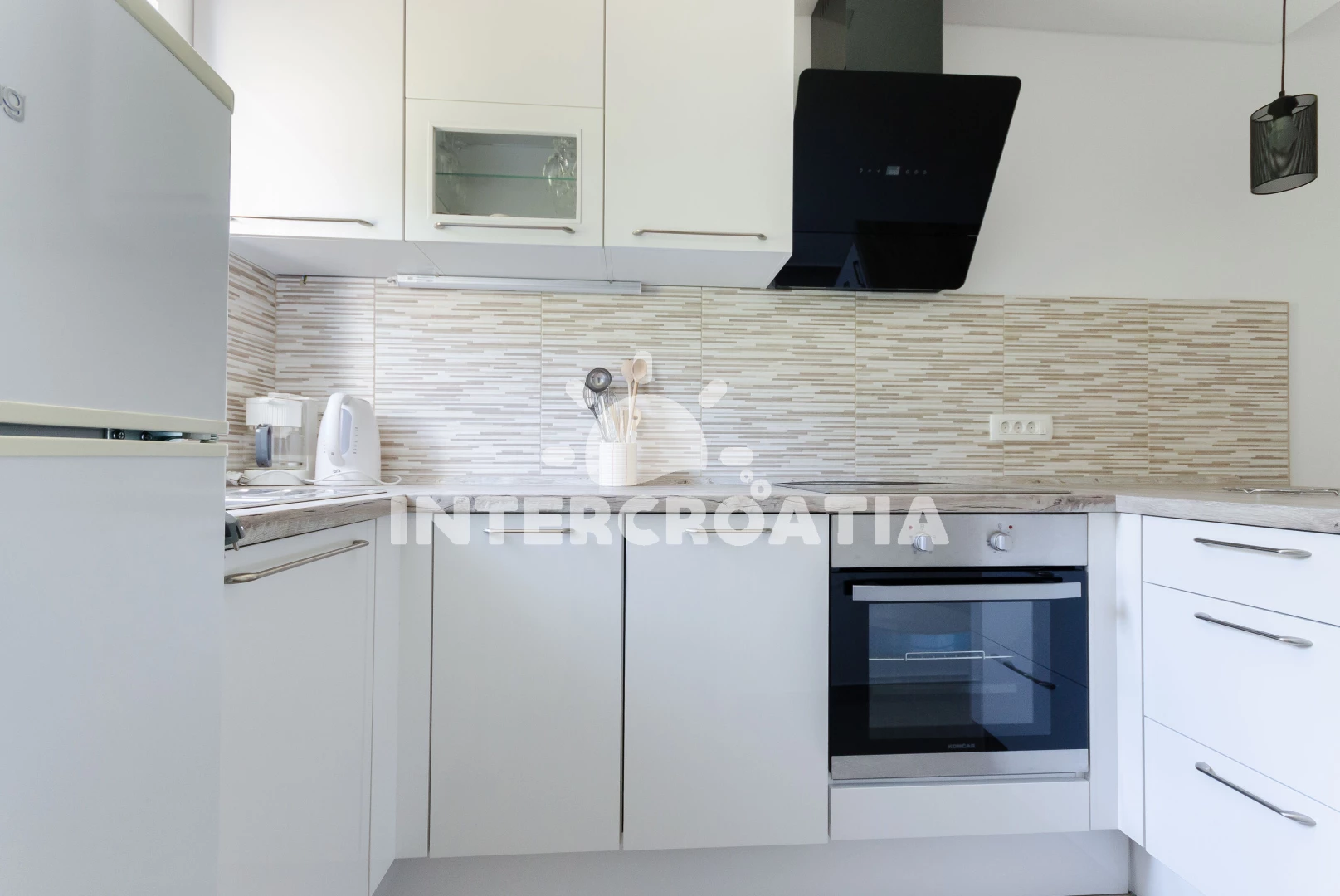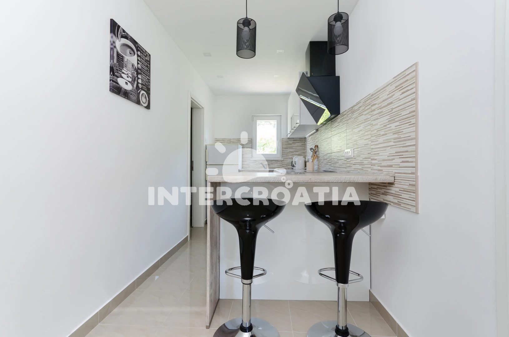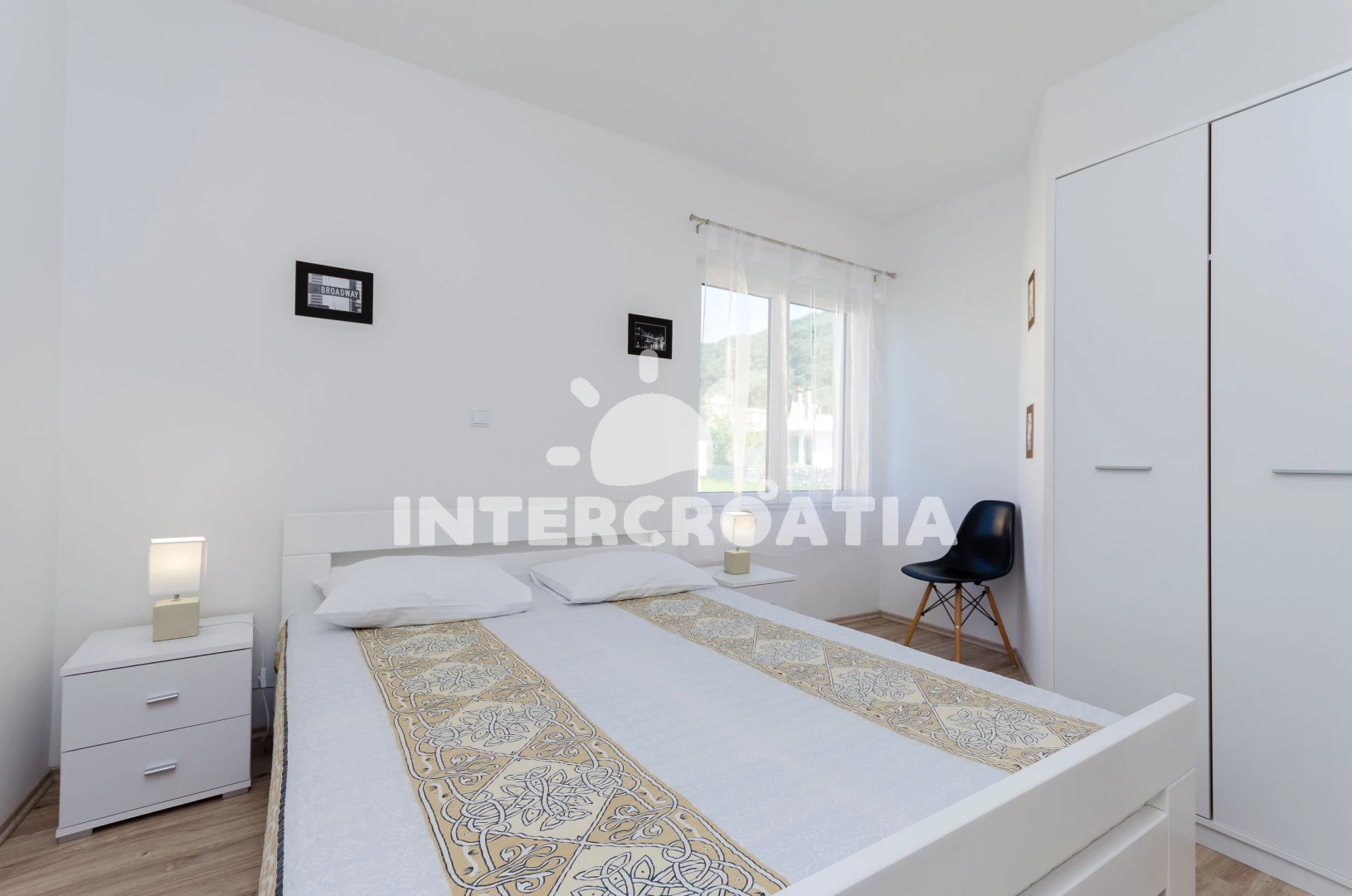 Apartmán se nachází 300 m od moře a pláže. Pláž je betonové desky, skalnatá a větší kamení. Parkování je před domem.