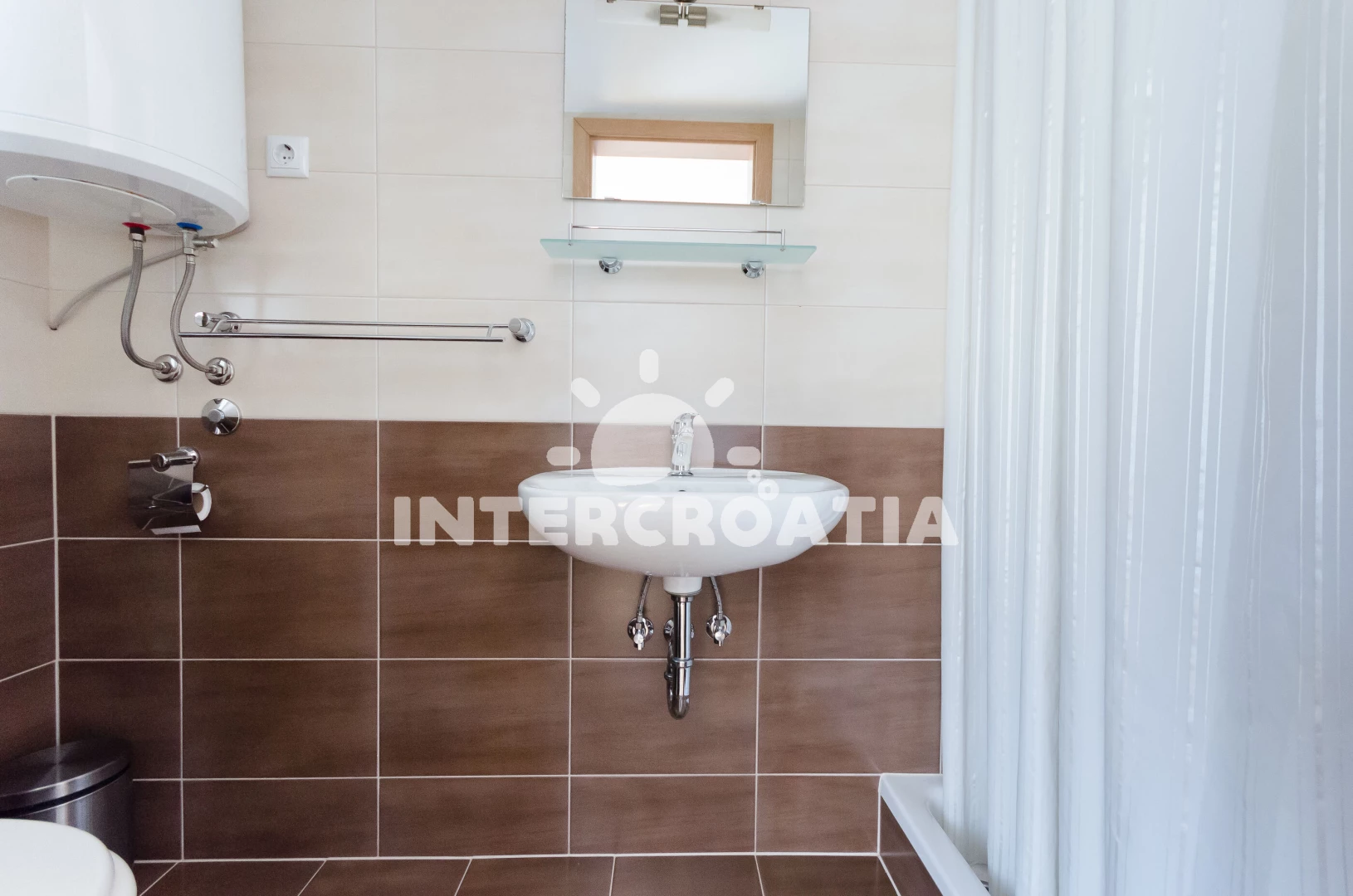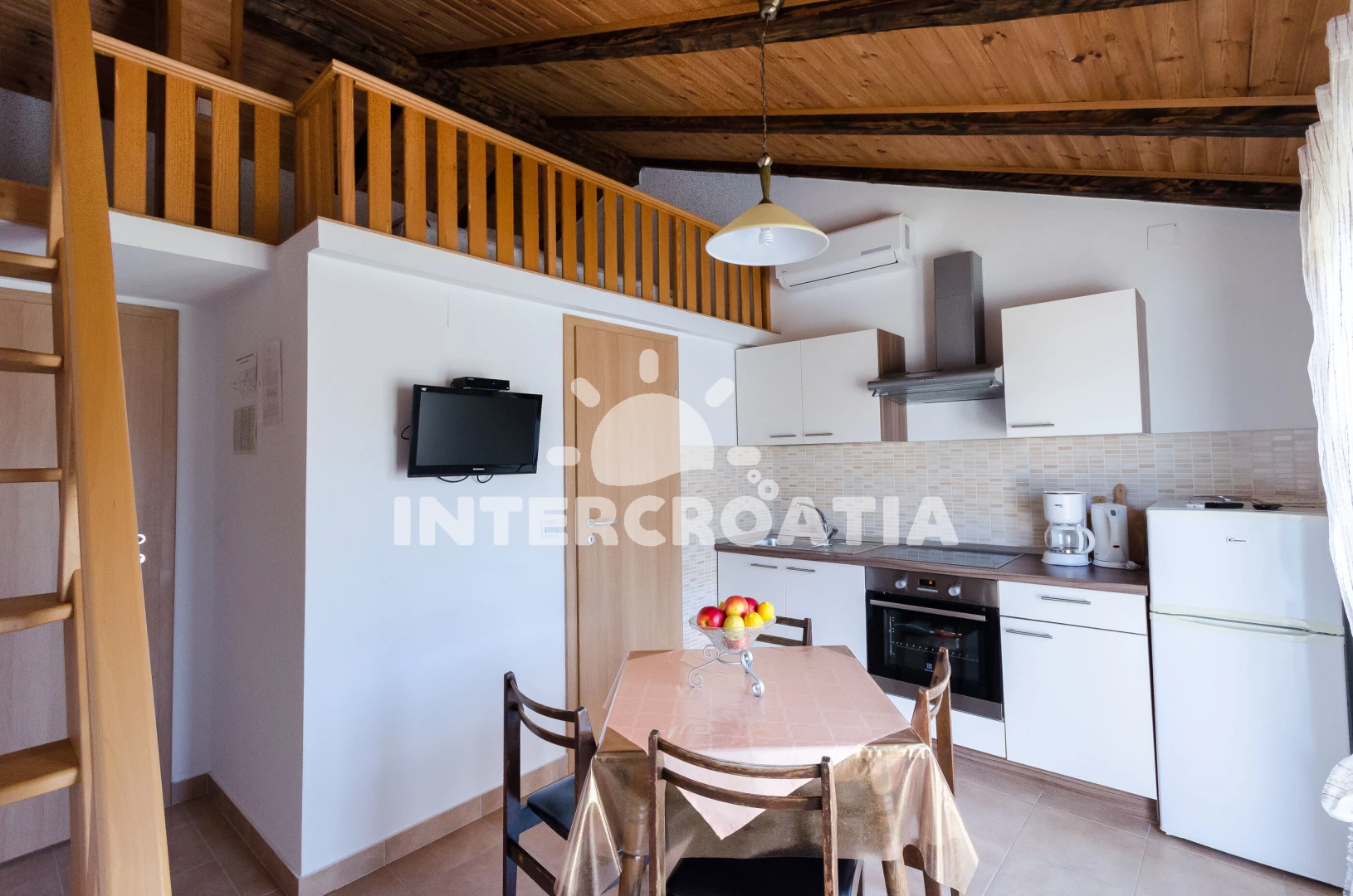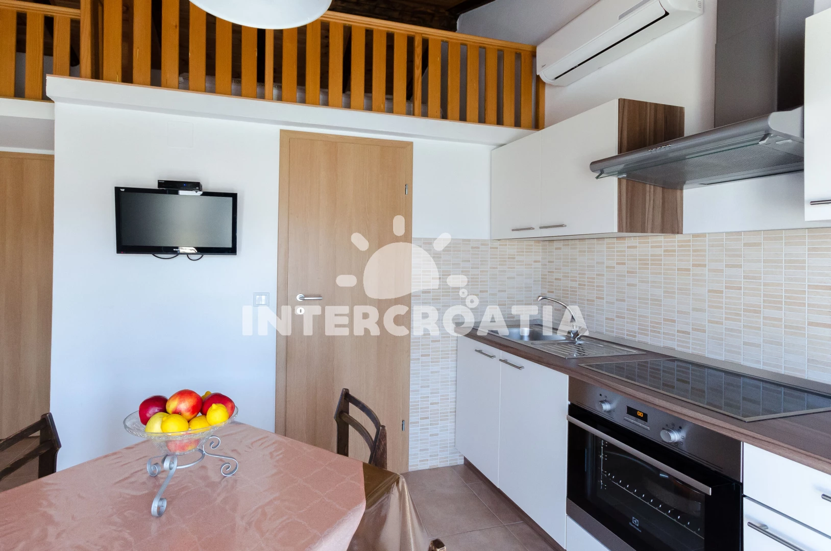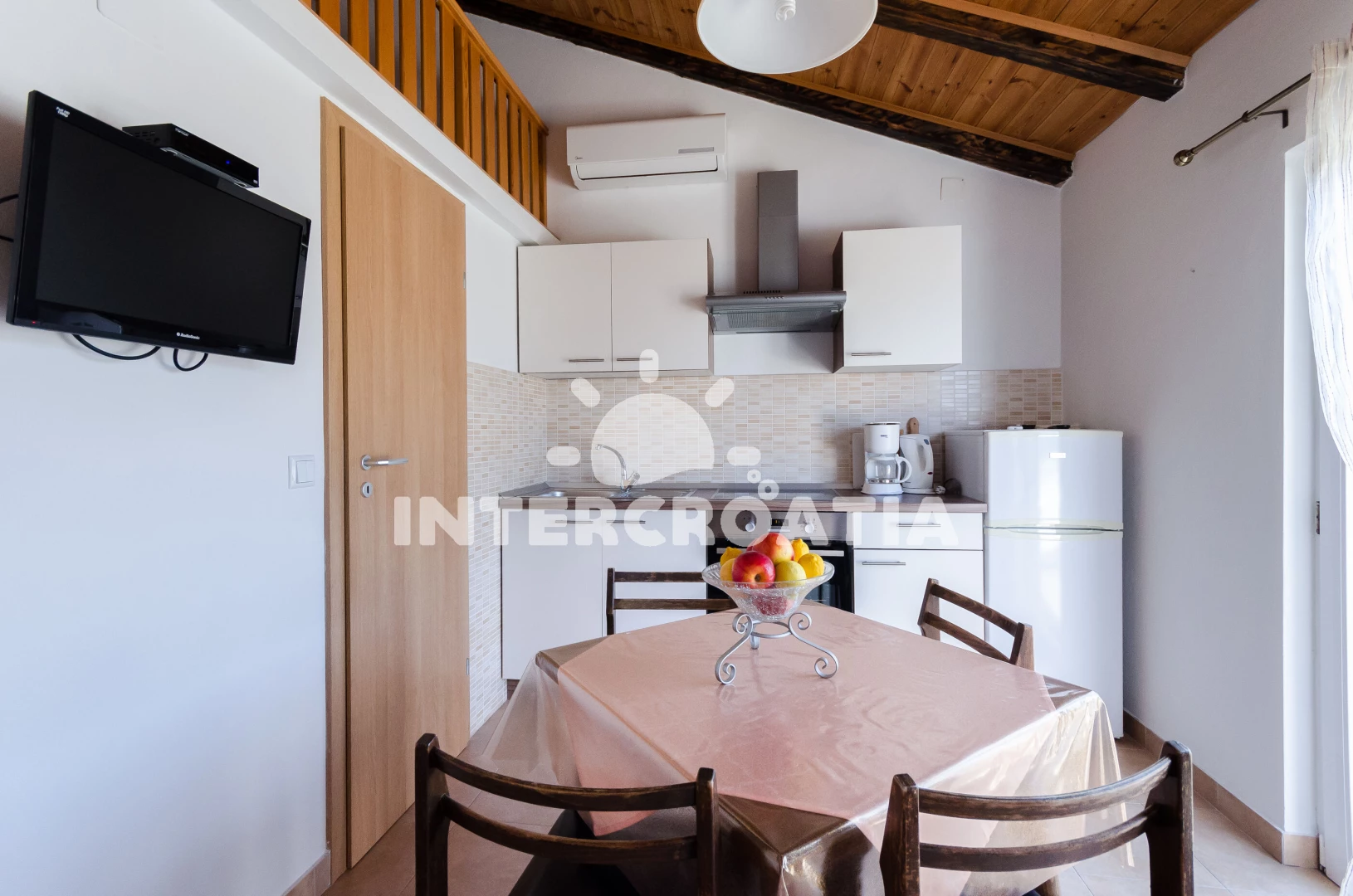 Apartmán se nachází 300 m od moře a pláže. Pláž je betonové desky, skalnatá a větší kamení. Parkování je před domem.