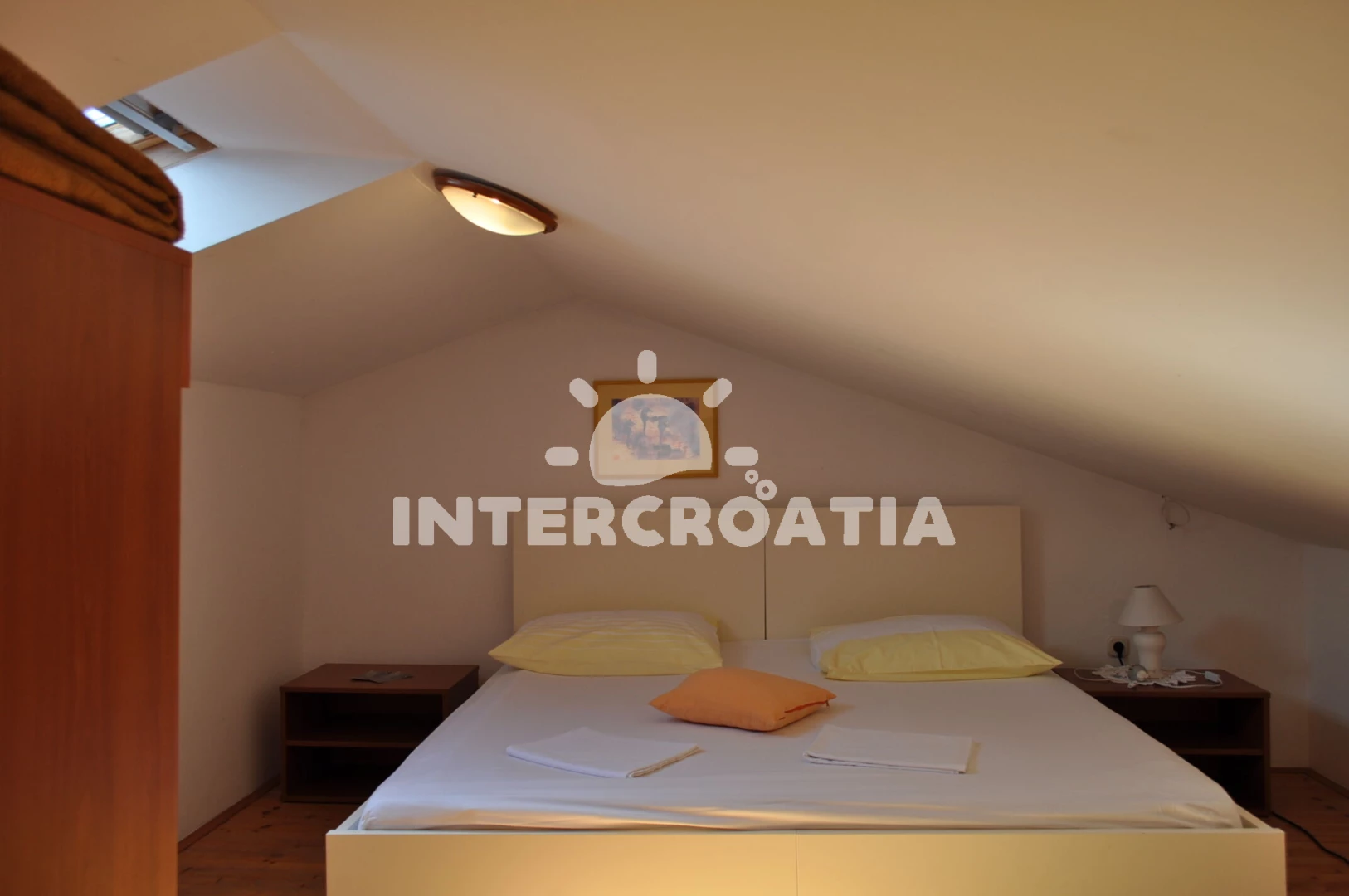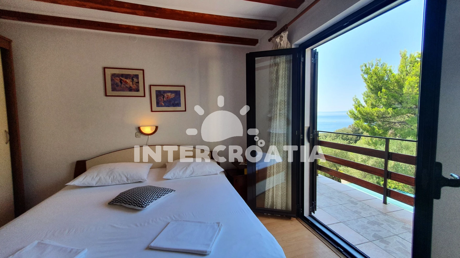 Apartmán (58 m2) s balkonem, s terasou, a výhledem na moře. Nachází se ve 2. patře objektu. Apartmán má 1 ložnici a je vhodný pro až 2 osoby. Kuchyňská linka je vybavena varnou deskou, troubou, kávovarem, toustovačem, mikrovlnnou troubou, rychlovarnou konvicí, nádobím, lednicí, mrazákem. K dispozici televize se satelitním programem. Ložnice s dvoulůžkem. Koupelna se sprchovým koutem, umyvadlem, fénem a WC.