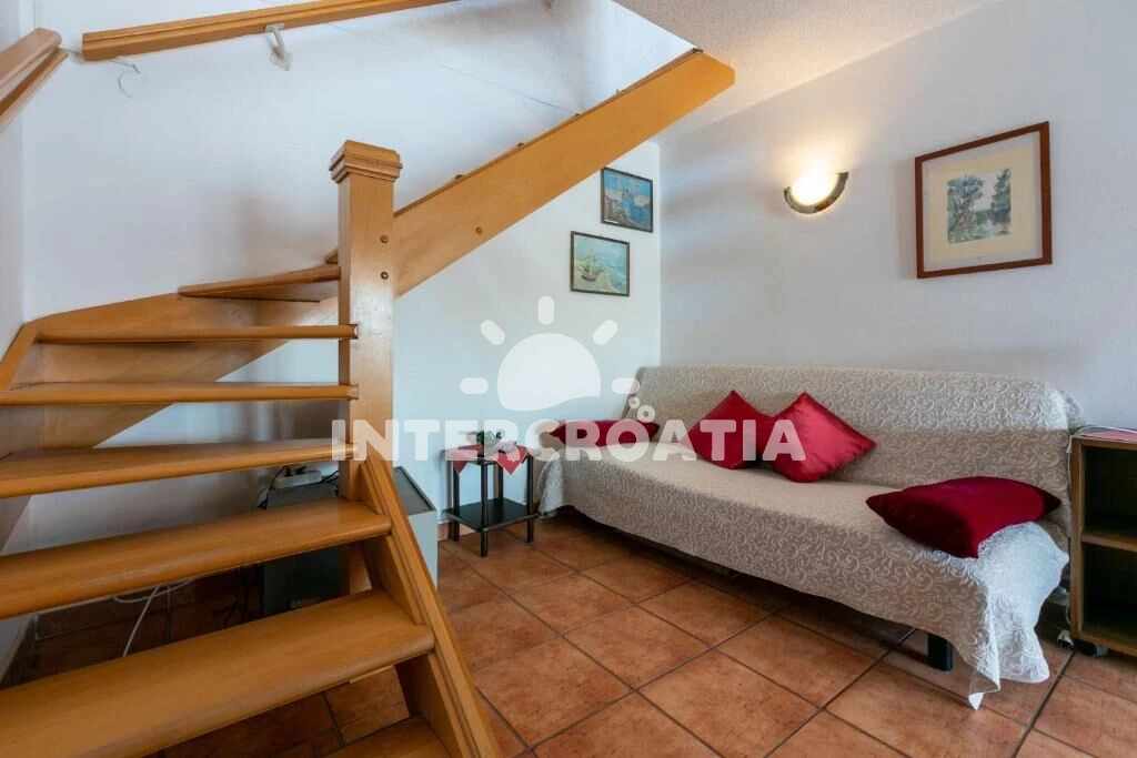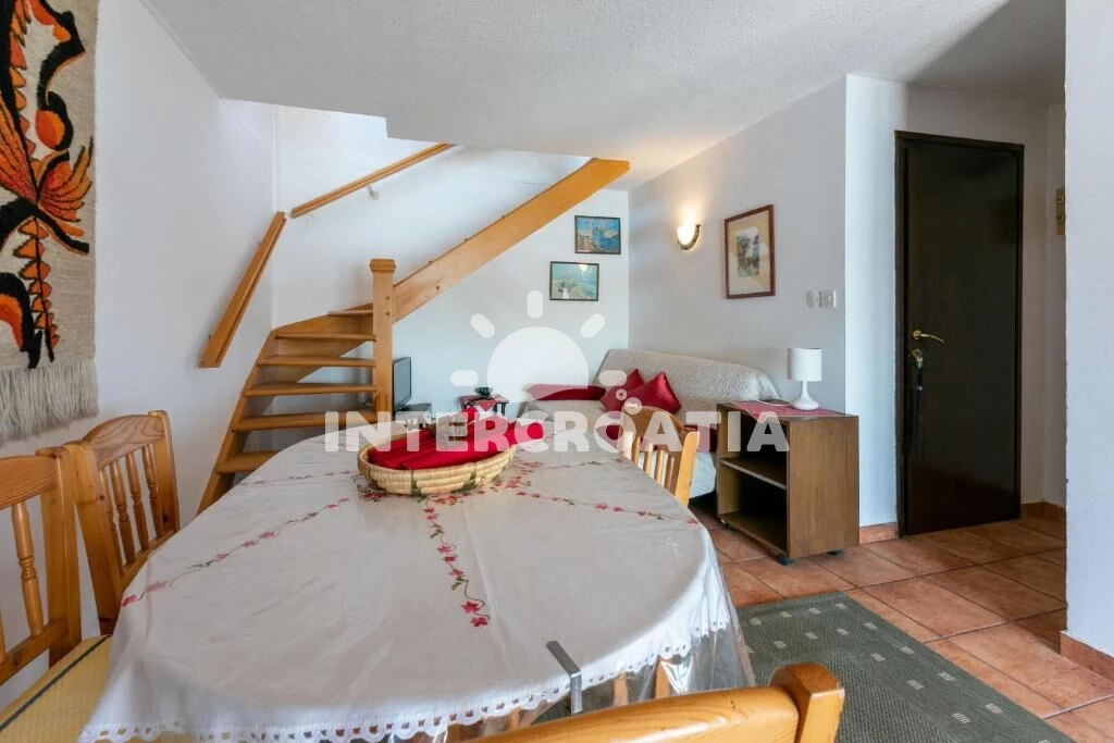 Apartmán (65 m2) s balkonem, a výhledem na moře. Nachází se ve dvou patrech objektu. Apartmán má 2 ložnice a je vhodný pro až 5 osob. Kuchyňská linka je vybavena varnou deskou, troubou, kávovarem,…