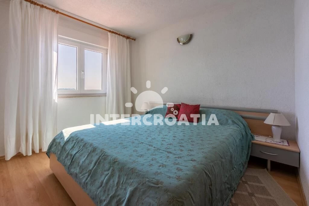 Apartmán (65 m2) s balkonem, a výhledem na moře. Nachází se ve dvou patrech objektu. Apartmán má 2 ložnice a je vhodný pro až 5 osob. Kuchyňská linka je vybavena varnou deskou, troubou, kávovarem, mikrovlnnou troubou, rychlovarnou konvicí, nádobím, lednicí, mrazákem. V obývací místnosti je rozložitelná pohovka (extra lůžko pro 1 osobu). K dispozici televize se satelitním programem, žehlička. První ložnice s dvoulůžkem. Druhá ložnice se 2 jednolůžky. Koupelna se sprchovým koutem, umyvadlem, WC. Hostům je k dispozici parkování u objektu zdarma.