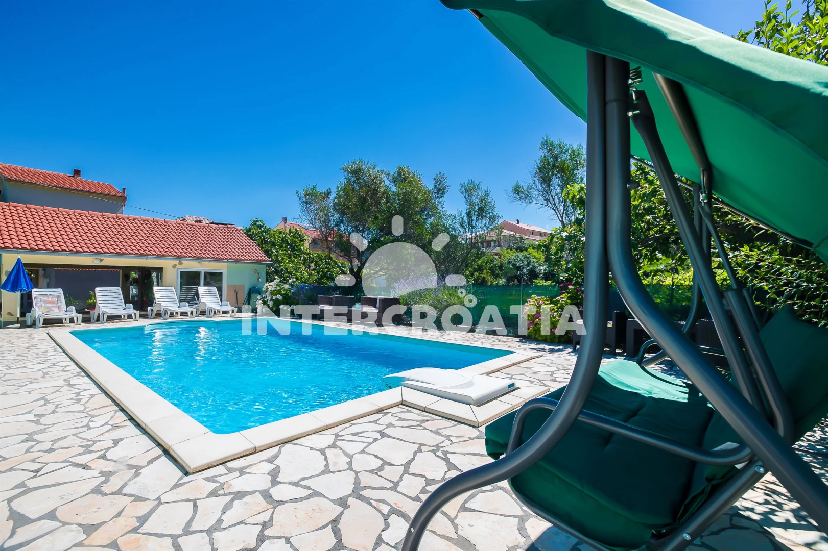 Apartmán se nachází 200 m od moře a pláže. Pláž je písčitá a oblázková. Apartmán disponuje bazénem s lehátky pro ubytované hosty. U objektu je k dispozici společná zahrada s posezením a grilem.