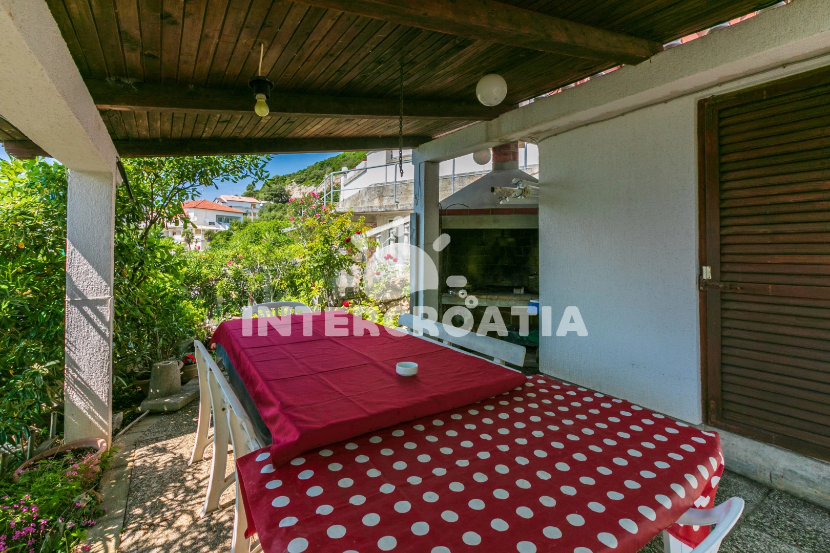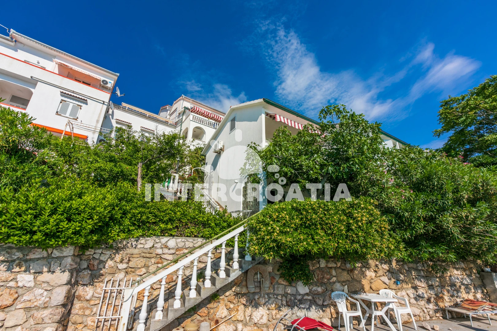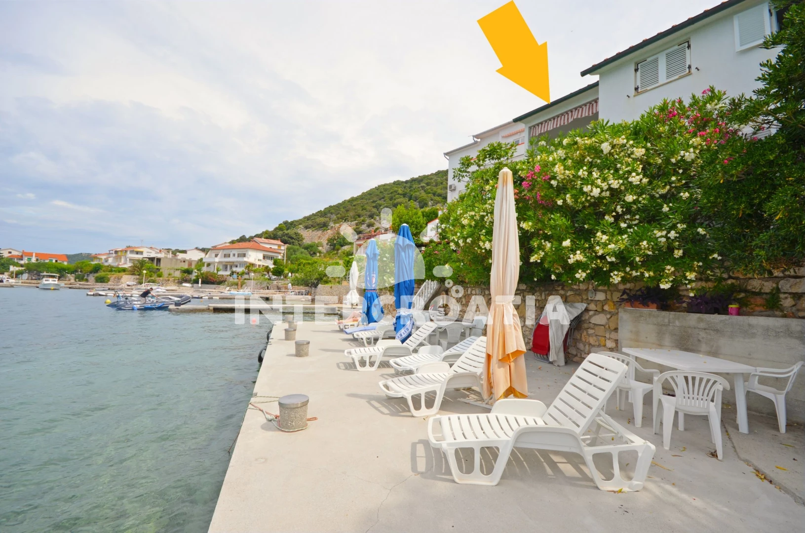 Vzdálenosti: Moře 10 m, pláž 50 m (betonové desky), kotviště pro čluny 5 m, restaurace 200 m, bar 200 m, marina 800 m, půjčovna motorových člunů 800 m, supermarket 800 m, směnárna 800 m, půjčovna kol 4 km, mini golf 4 km, diskotéka 4 km, pošta 4 km, banka 4 km, ambulance 4 km, tenisové kurty 4 km, lékárna 4 km, potápění 4 km, trajekt (Lopar) 5 km, muzeum 12 km, čerpací stanice 13 km, centrum 13 km, letiště 106 km,