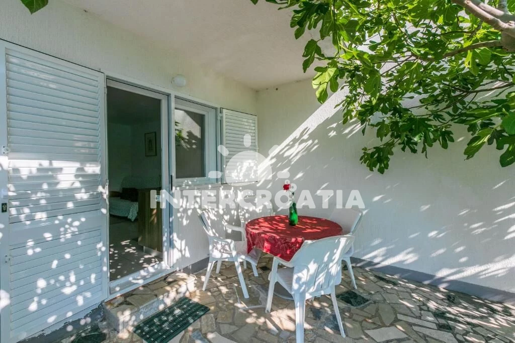 Apartmán se nachází 50 m od moře a pláže. Pláž je betonové desky. U objektu je k dispozici společná zahrada s posezením a grilem.