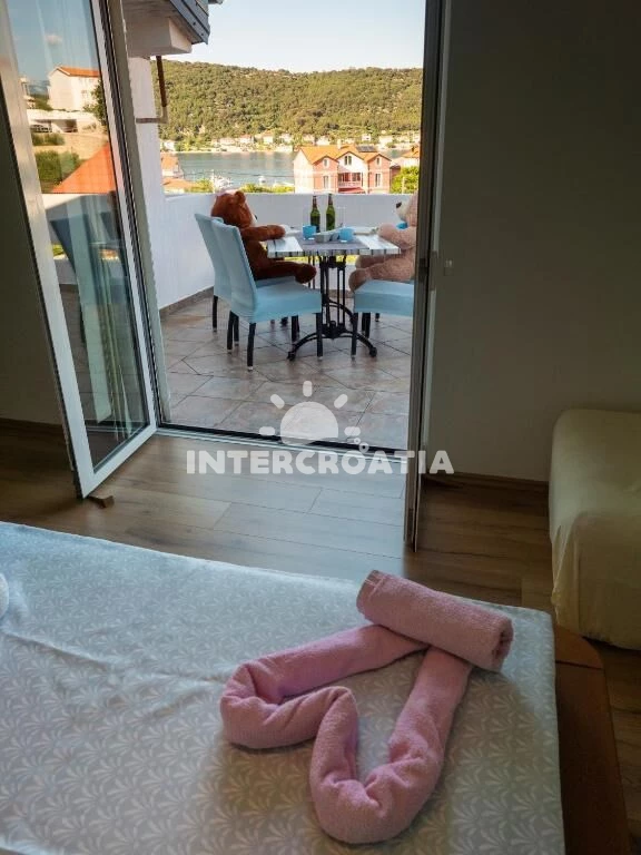 Apartmán (2) s balkonem, s terasou. Nachází se v objektu. Apartmán má 2 ložnice a je vhodný pro až 2 osoby. Kuchyňská linka je vybavena varnou deskou, troubou, kávovarem, myčkou na nádobí, mikrovlnnou troubou, nádobím, lednicí, mrazákem. K dispozici televize, žehlička. První ložnice s dvoulůžky. Druhá ložnice s dvoulůžkem.