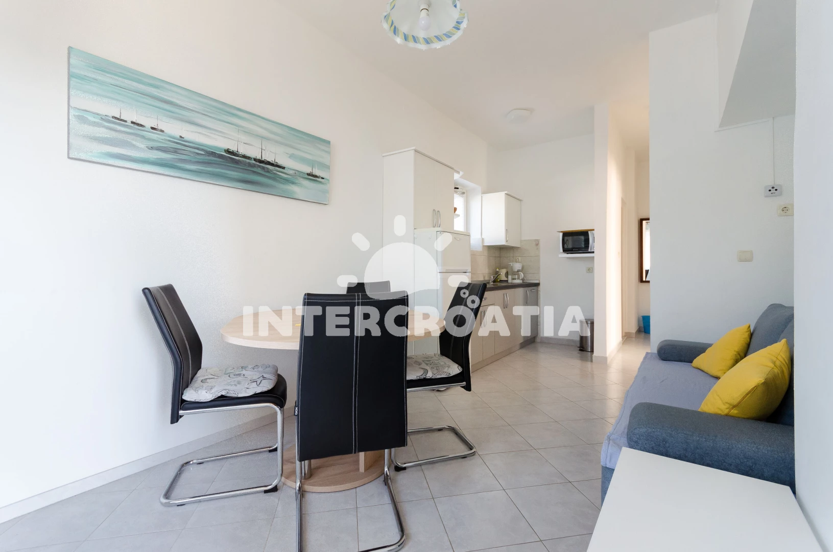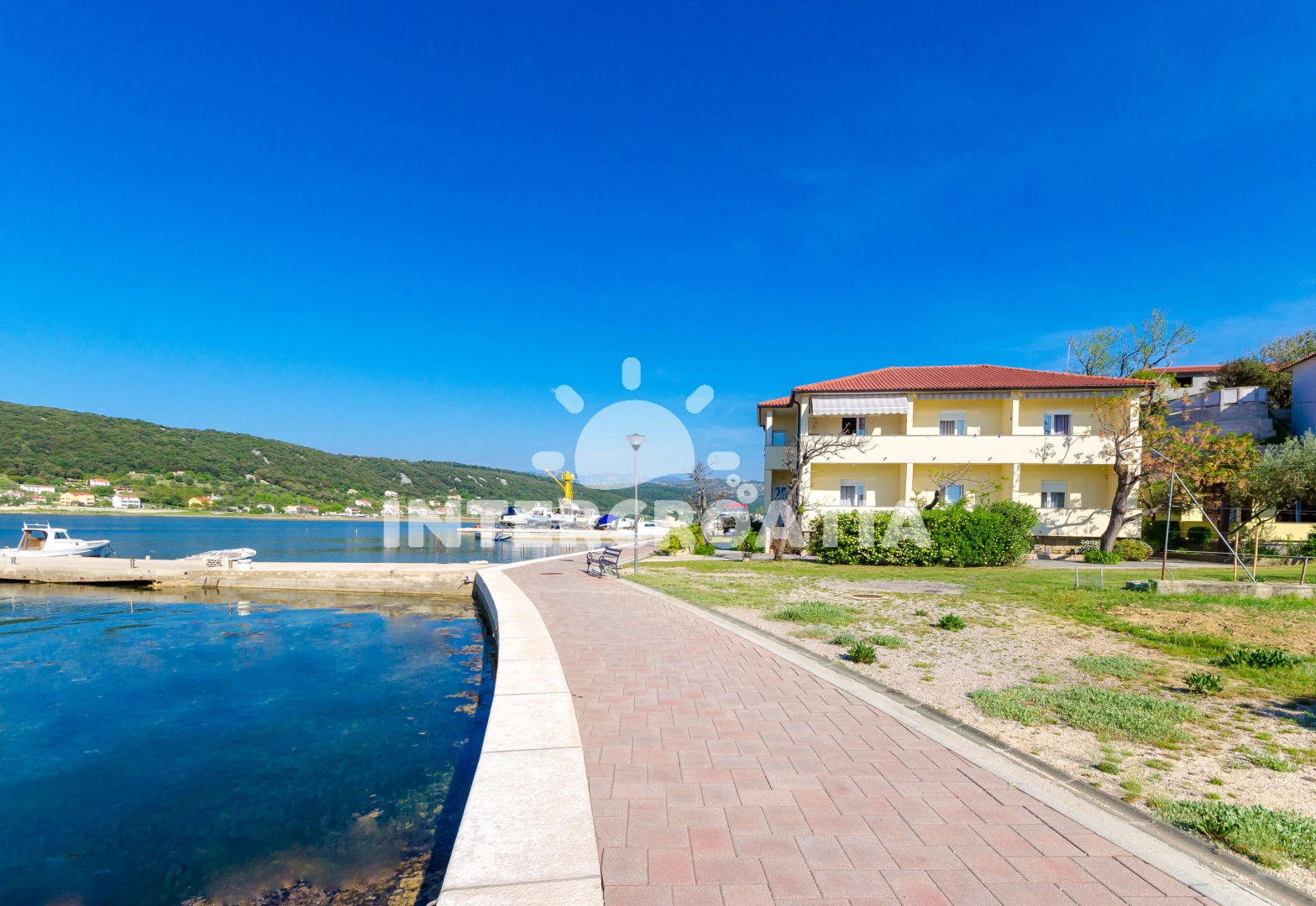 Vzdálenosti: Moře 20 m, pláž 500 m (písčitá a oblázková), kotviště pro čluny 10 m, půjčovna motorových člunů 50 m, restaurace 50 m, supermarket 100 m, veřejná doprava 100 m, ambulance 100 m, tenisové kurty 150 m, půjčovna kol 500 m, marina 500 m, směnárna 500 m, bar 800 m, potápění 1,5 km, centrum 6 km, diskotéka 6 km, muzeum 6 km, pošta 6 km, čerpací stanice 6 km, lékárna 6 km, banka 6 km, trajekt (Misnjak) 12 km, letiště (Rijeka) 80 km,