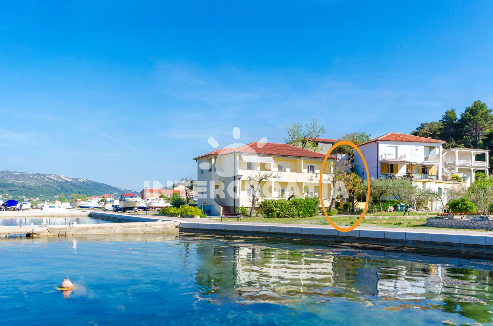 Vzdálenosti: Moře 25 m, pláž 500 m (písčitá a oblázková), kotviště pro čluny 10 m, půjčovna motorových člunů 50 m, restaurace 50 m, supermarket 100 m, veřejná doprava 100 m, ambulance 100 m, tenisové kurty 150 m, půjčovna kol 500 m, marina 500 m, směnárna 500 m, bar 800 m, potápění 1,5 km, centrum 6 km, diskotéka 6 km, muzeum 6 km, pošta 6 km, čerpací stanice 6 km, lékárna 6 km, banka 6 km, trajekt (Misnjak) 12 km, letiště (Rijeka) 80 km,