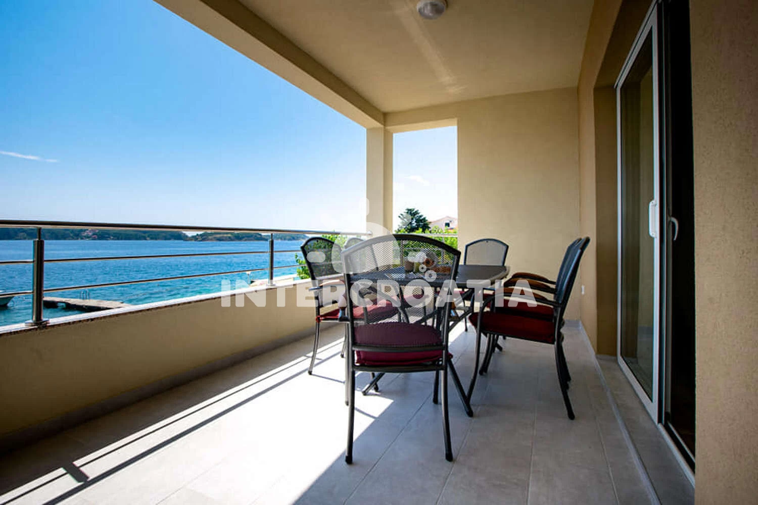 Apartmán se nachází 5 m od moře a pláže. Pláž je oblázková a betonové desky. U objektu je k dispozici společná zahrada s posezením a grilem. Parkování je před domem.