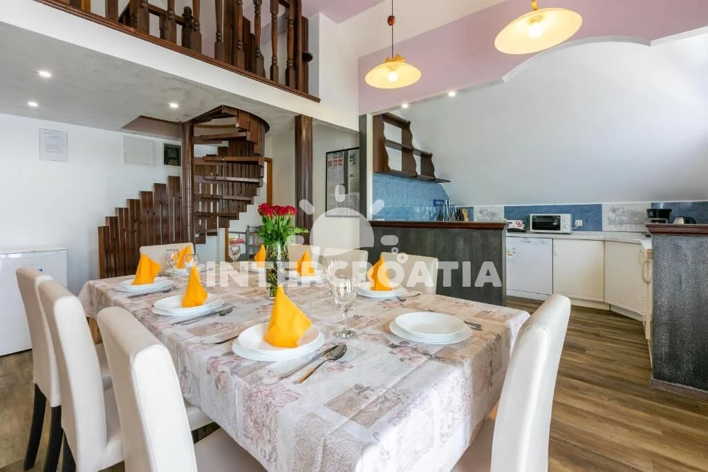 Domácí zvířata nejsou povolena. V ceně pobytu zahrnuto: WiFi, klimatizace (část místností), topení, povlečení, ručníky, pračka, dětská postýlka (služba na požádání), závěrečný úklid, pobytová taxa. Host je povinen v den příjezdu do ubytování složit vratnou zálohu celkem 200 €, kterou dostane zpět v den odjezdu, pokud nepoškodil ubytovací jednotku. Pronajímatel se dorozumí chorvatsky, anglicky, německy, italsky. Pronajímatel vás bude očekávat po 16:00. V den odjezdu je nutné vyklidit apartmán do 11:00.