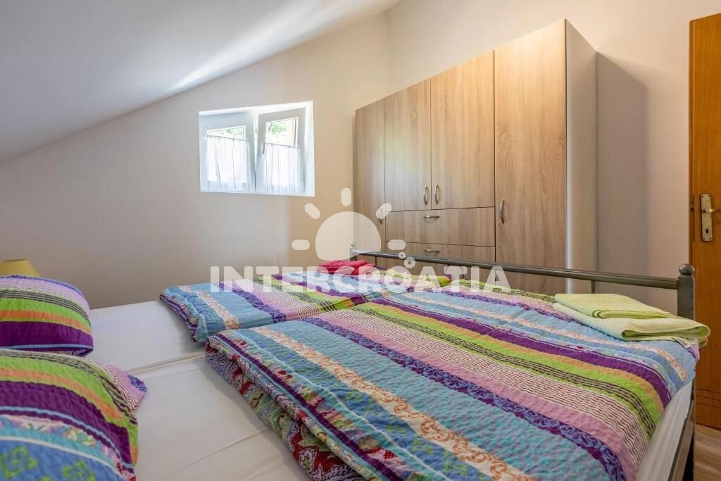 Vzdálenosti: Moře 300 m, pláž 300 m (písčitá a betonové desky), potápění 300 m, půjčovna motorových člunů 300 m, restaurace 300 m, bar 300 m, veřejná doprava 800 m, supermarket 1 km, směnárna 1 km, ambulance 2 km, tenisové kurty 2 km, marina 5 km, pošta 10 km, muzeum 10 km, centrum 10 km, banka 10 km, mini golf 10 km, čerpací stanice 10 km, lékárna 10 km, diskotéka 10 km, trajekt (Lopar) 12 km,