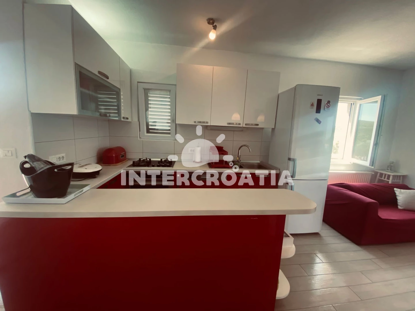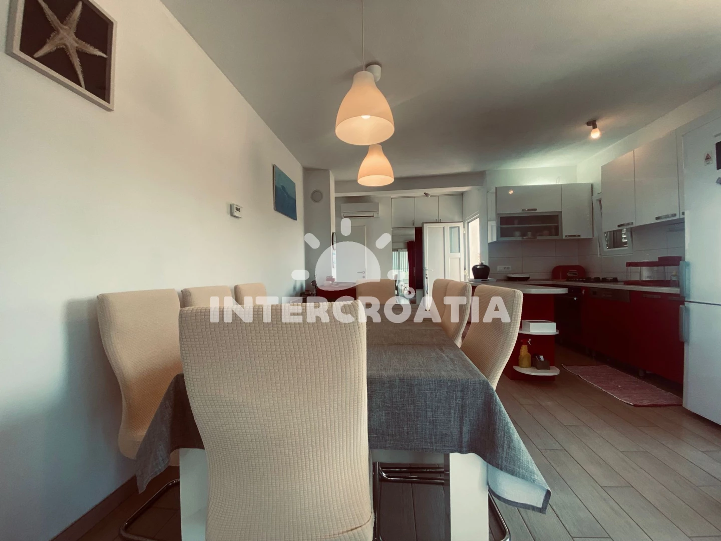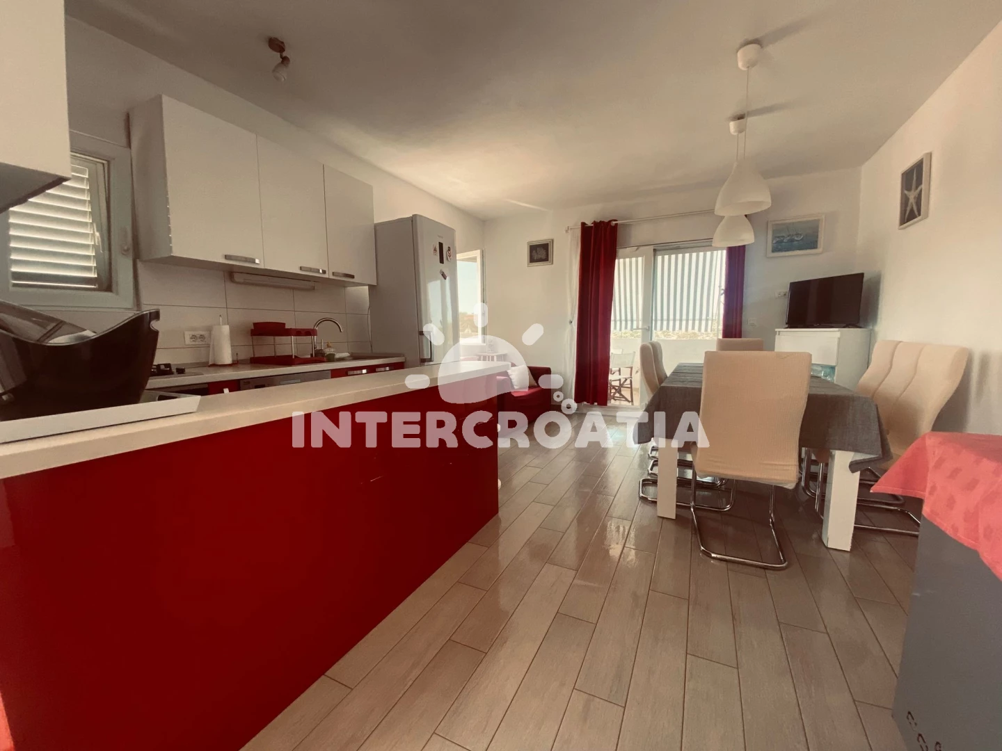 Apartmán se nachází 150 m od moře a pláže. Pláž je oblázková a betonové desky. Parkování je před domem.