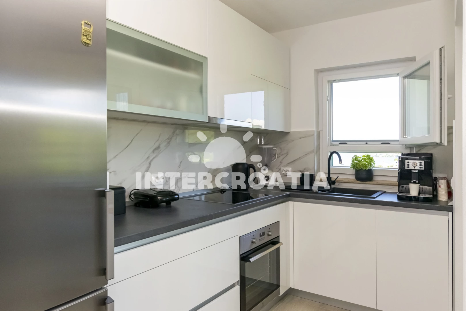 Prekrasno uređen apartman, jako uredan i čist. U apartmanu smo se osjećali kao kod kuće, kuhinja odlično opremljena. Jako prostrano s predivnom terasom koja ima pogled na uvalu. Preljubazni vlasnici Marta i Njegoslav potrudili su se da nam ništa ne fali, osjećali smo se kao dio obitelji. Okoliš je također prekrasno uređen, vidi se da je uloženo puno truda u okoliš, puno detalja koji boravak čine još ljepšim. Plaža je na 3 minute, postoji putić ispod kuće kojim se moguće spustiti direktno do uvale. Svakako bi preporučili parovima, te obiteljima koje žele mirno mjesto za odmor