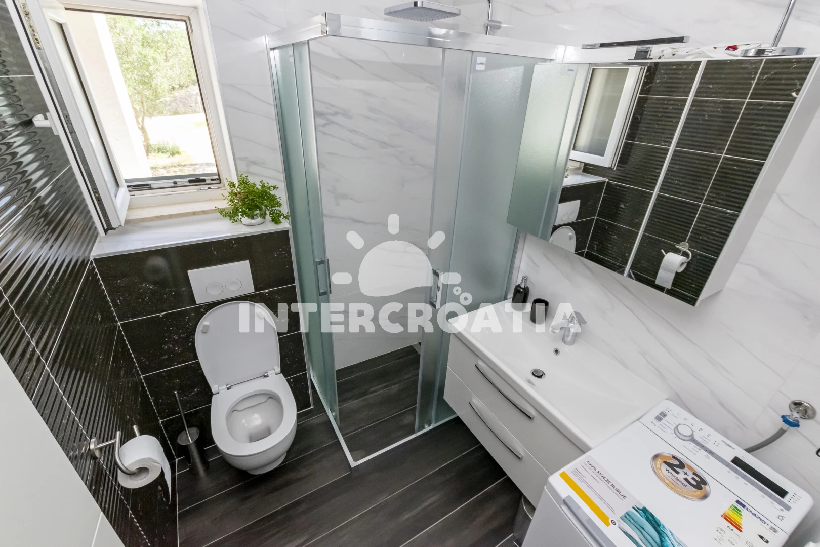Vzdálenosti: Moře 80 m, pláž 80 m (kamenné a betonové desky), centrum 1 km, bar 1 km, supermarket 1 km, restaurace 1 km, pošta 5 km, ambulance 5 km, čerpací stanice 5 km, lékárna 5 km, trajekt (Rogač) 5 km,