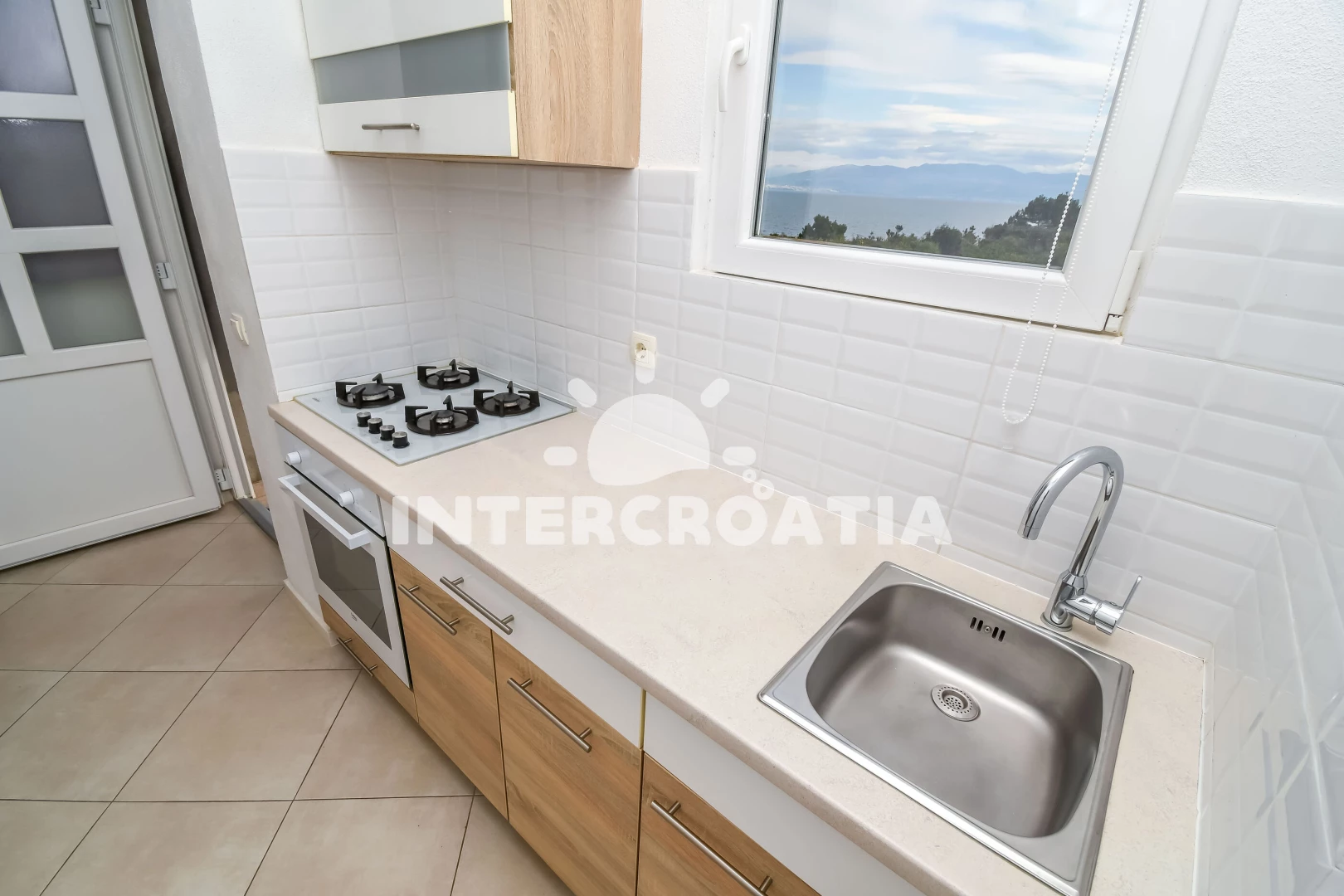 Apartmán (47 m2) s výhledem na moře. Nachází se v 1. patře objektu. Apartmán má 1 ložnici a je vhodný pro až 4 osoby. Kuchyňská linka je vybavena varnou deskou, troubou, kávovarem, toustovačem,…