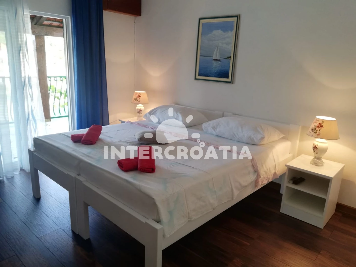 Apartmán (46 m2) s balkonem, a výhledem na moře. Nachází se v 1. patře objektu. Apartmán má 2 ložnice a je vhodný pro až 4 osoby. Kuchyňská linka je vybavena varnou deskou, troubou, myčkou na nádobí,…