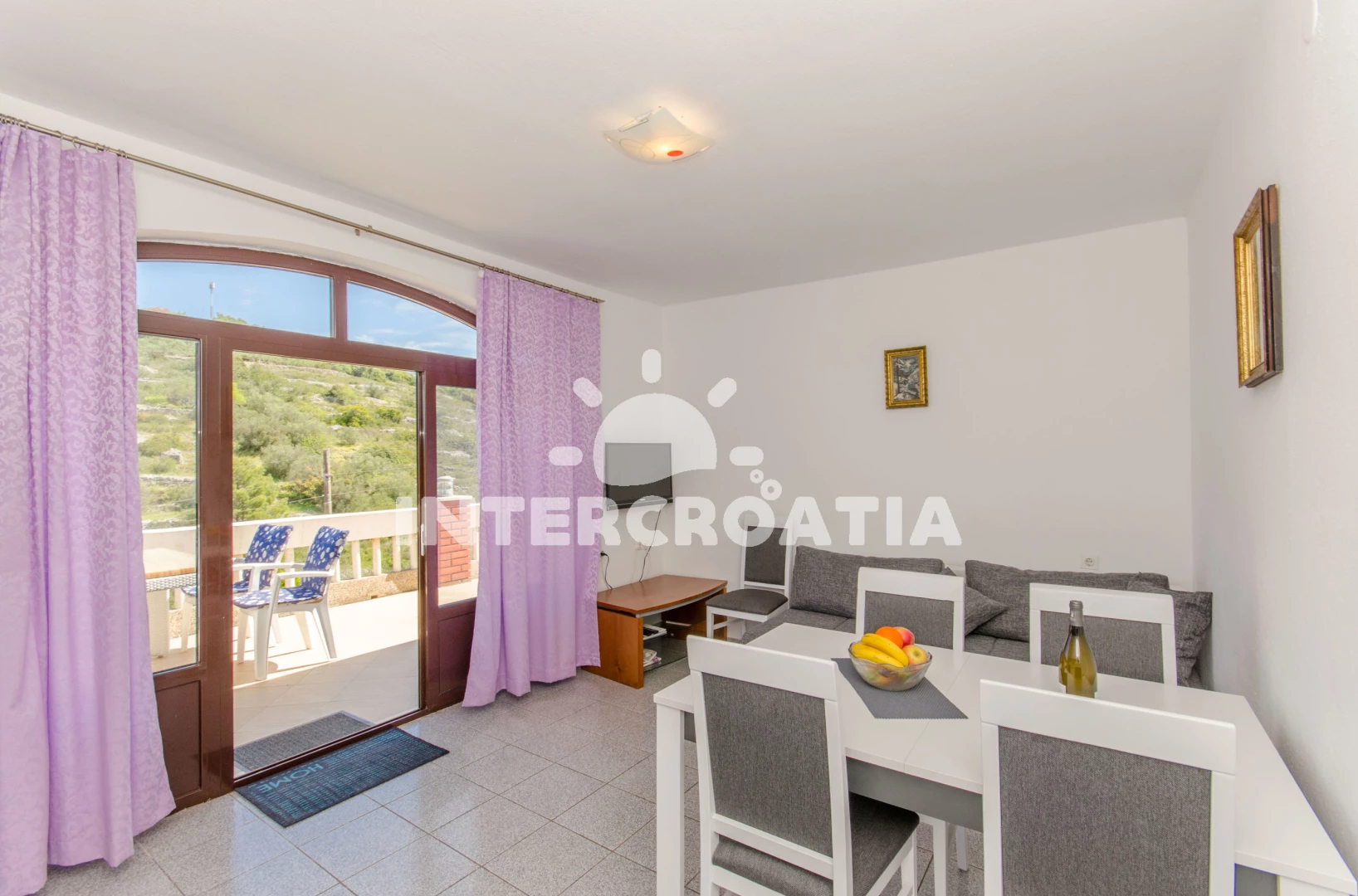 Vzdálenosti: Moře 350 m, pláž 750 m (oblázky), tenisové kurty 10 m, centrum 350 m, veřejná doprava 450 m, půjčovna motorových člunů 500 m, půjčovna kol 500 m, restaurace 500 m, bar 500 m, pošta 500 m, kotviště pro čluny 500 m, supermarket 500 m, směnárna 500 m, potápění 500 m, diskotéka 8 km, ambulance 10 km, lékárna 10 km, trajekt (Rogač) 12 km, čerpací stanice 12 km, letiště (Split) 49 km,