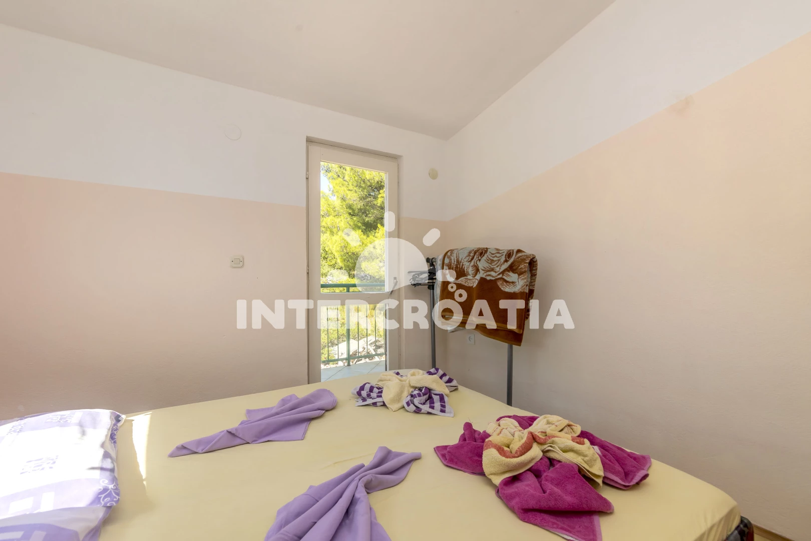 Apartmán se nachází 200 m od moře a pláže. Pláž je skalnatá a větší kamení. U objektu je k dispozici společná zahrada s posezením a grilem. Parkování je před domem.