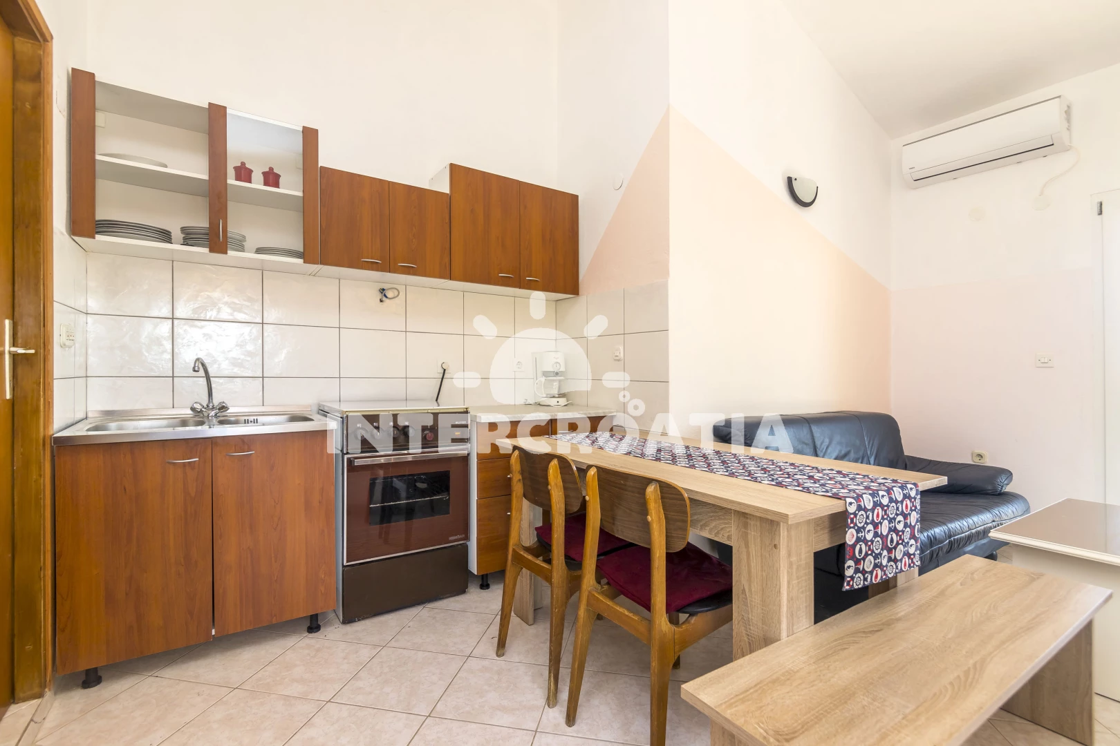 Apartmán se nachází 200 m od moře a pláže. Pláž je skalnatá a větší kamení. U objektu je k dispozici společná zahrada s posezením a grilem. Parkování je před domem.
