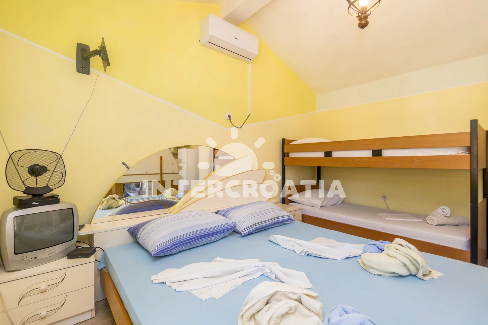 Apartmán se nachází 300 m od moře a pláže. Pláž je oblázková.