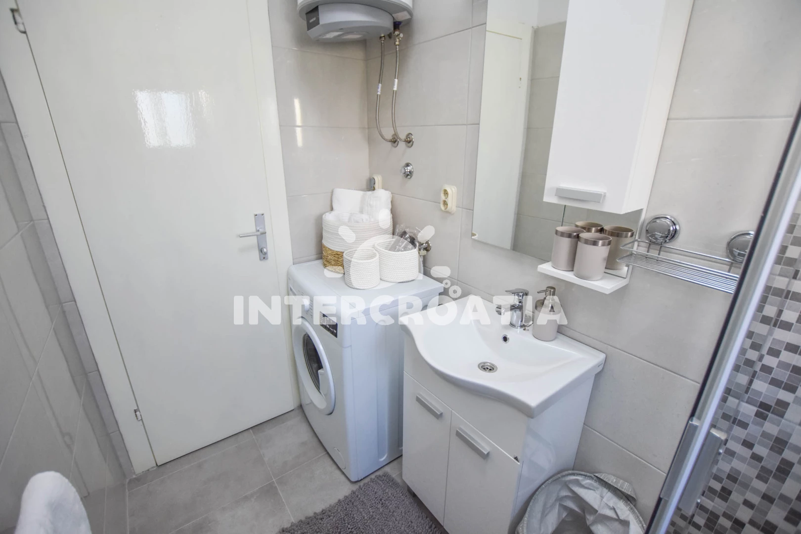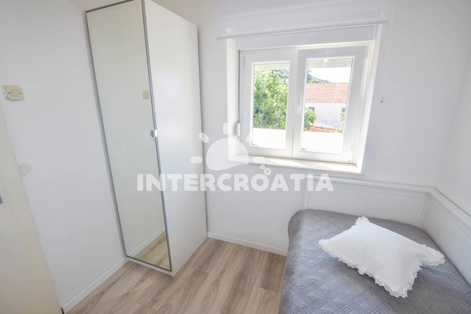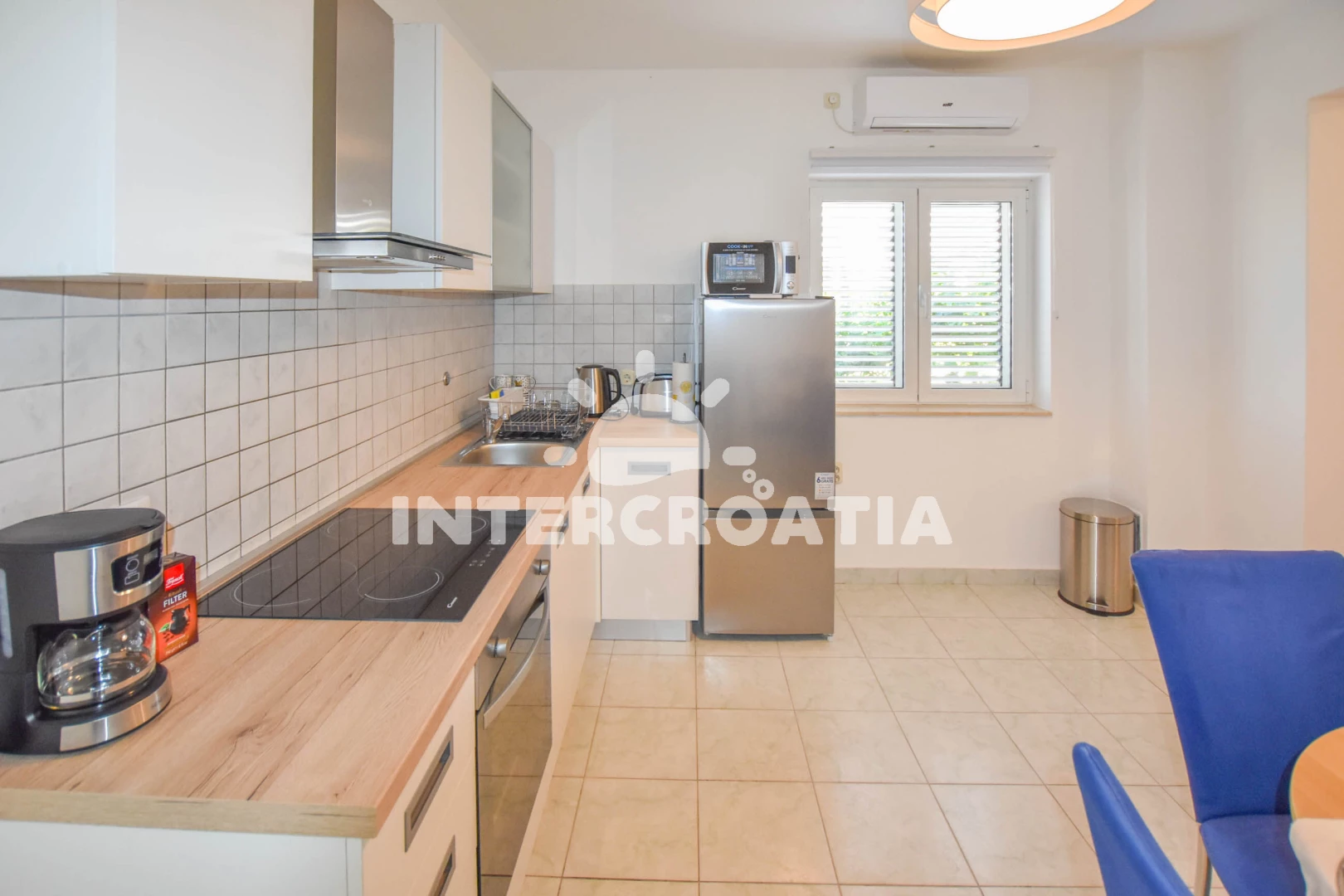 Apartmán se nachází 250 m od moře a pláže. Pláž je písčitá, skalnatá, oblázková, větší kamení a betonové desky. U objektu je k dispozici společná zahrada s posezením a grilem. Parkování je před domem.