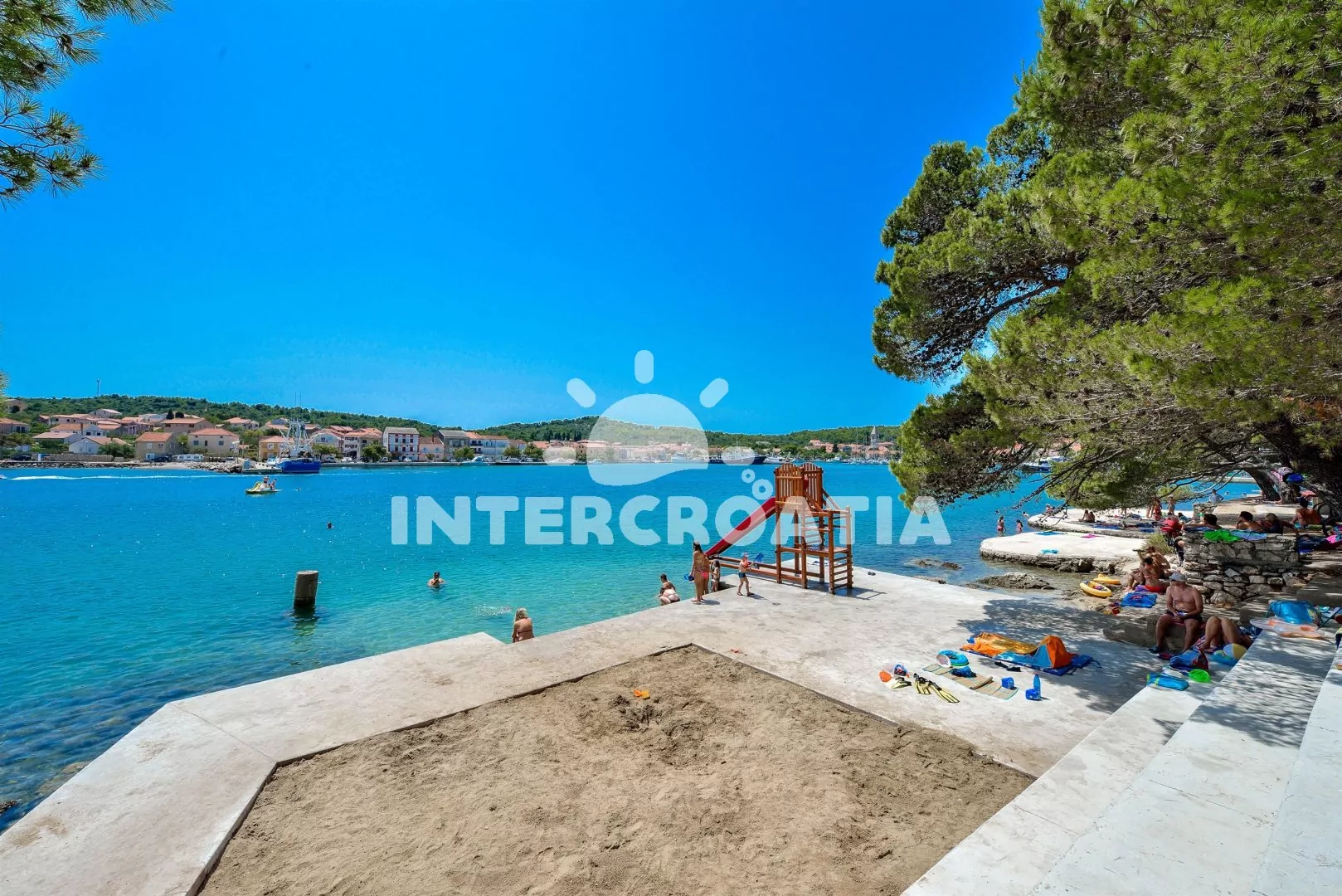 Vzdálenosti: Moře 250 m, pláž (písečná) 500 m, centrum 200 m, market 200 m, pošta 6 km, lékárna 6 km, nemocnice 250 m, restaurace 250 m, směnárna 250 m, banka 6 km, přístav 6 km, půjčovna kol 300 m, tenisové kurty 400 m, bar 250 m, čerpací stanice 6 km, veřejná doprava 200 m, trajekt (Preko) 6 km, letiště (Zadar) 20 km.