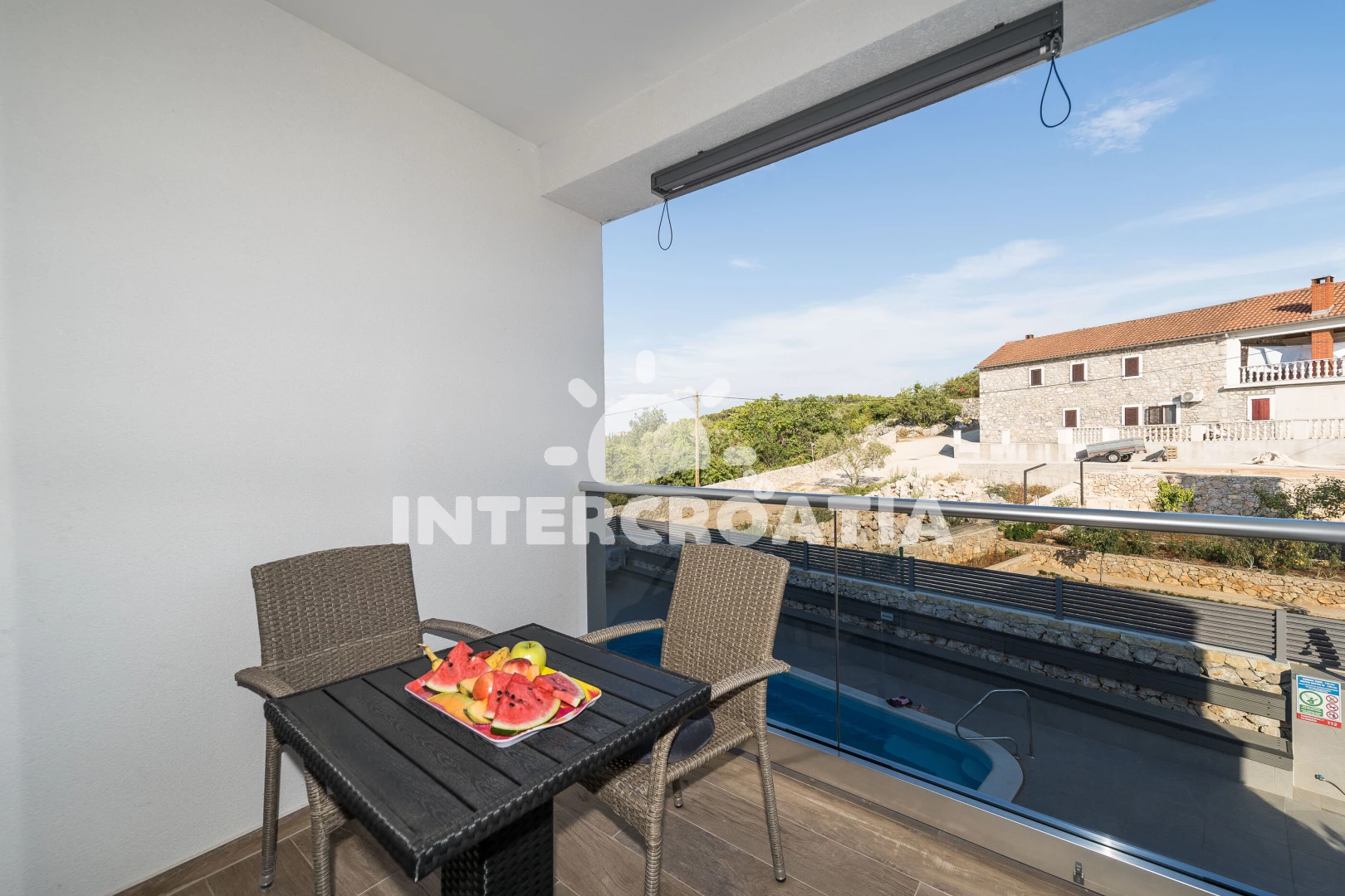 Vzdálenosti: Moře 100 m, pláž 100 m (oblázky), centrum 500 m, veřejná doprava 1 km, supermarket 1 km, lékárna 1 km, ambulance 1 km, restaurace 1 km, trajekt (Zadar) 5 km, letiště (Zadar) 15 km, park Plitvice 35 km,