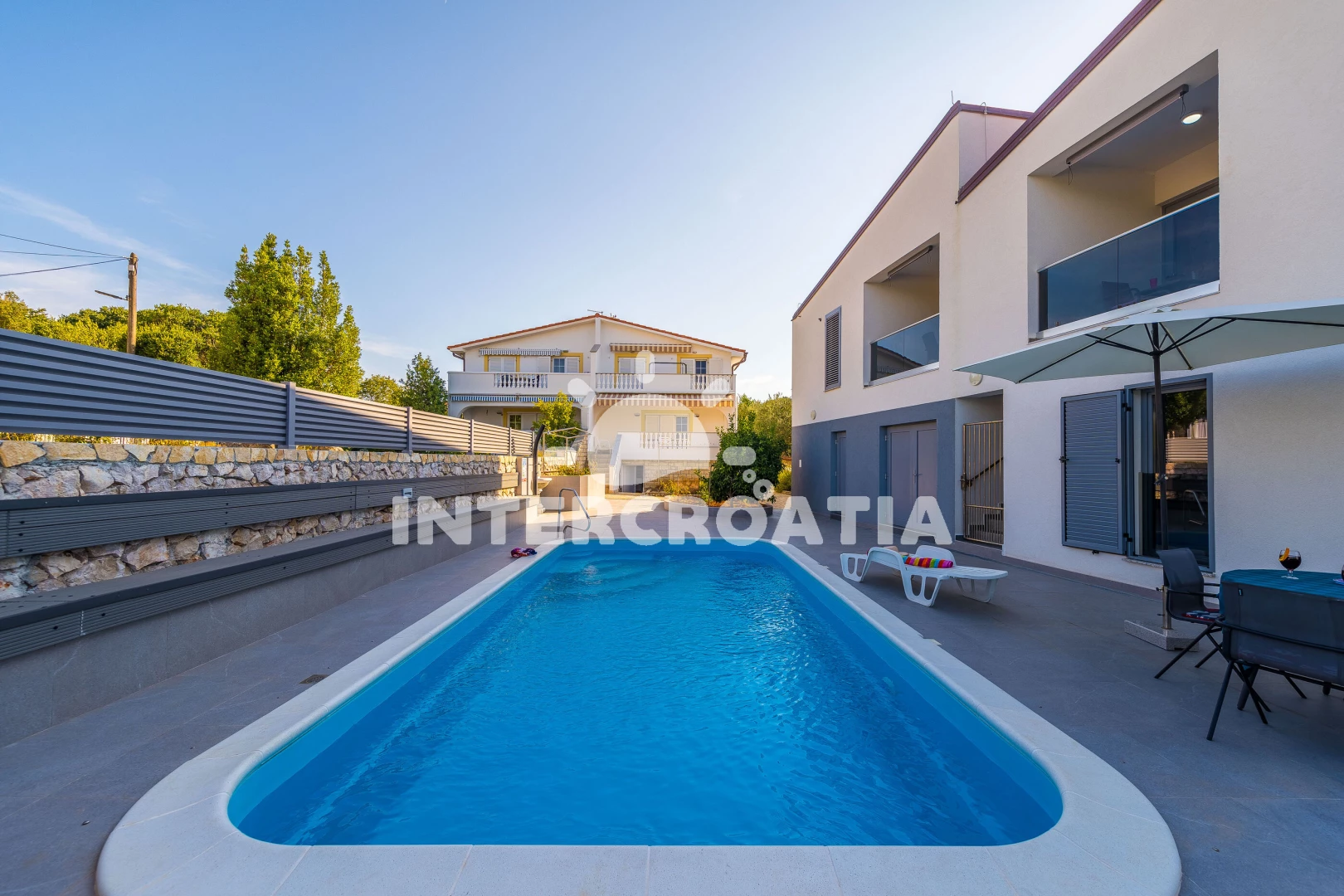 Apartmán se nachází 100 m od moře a pláže. Pláž je oblázková. Apartmán disponuje bazénem s lehátky pro ubytované hosty. U objektu je k dispozici společná zahrada s posezením a grilem. Parkování je před domem.