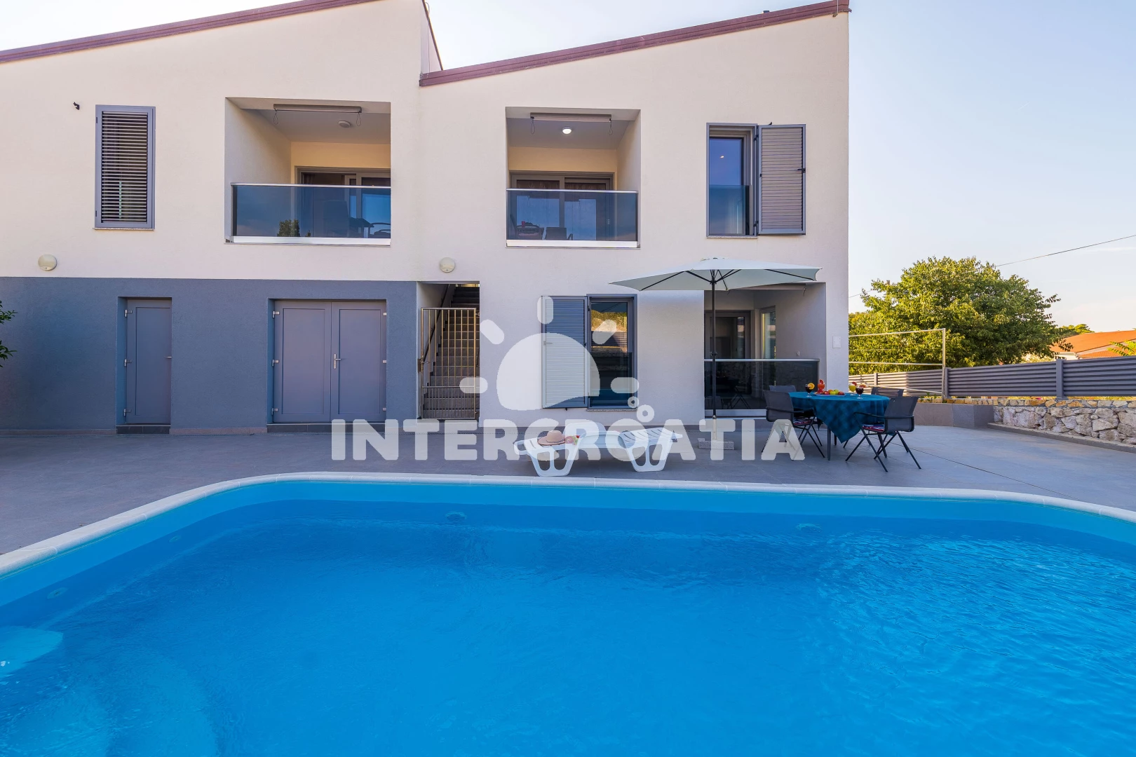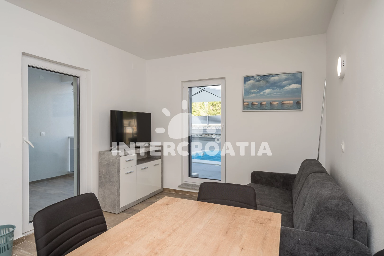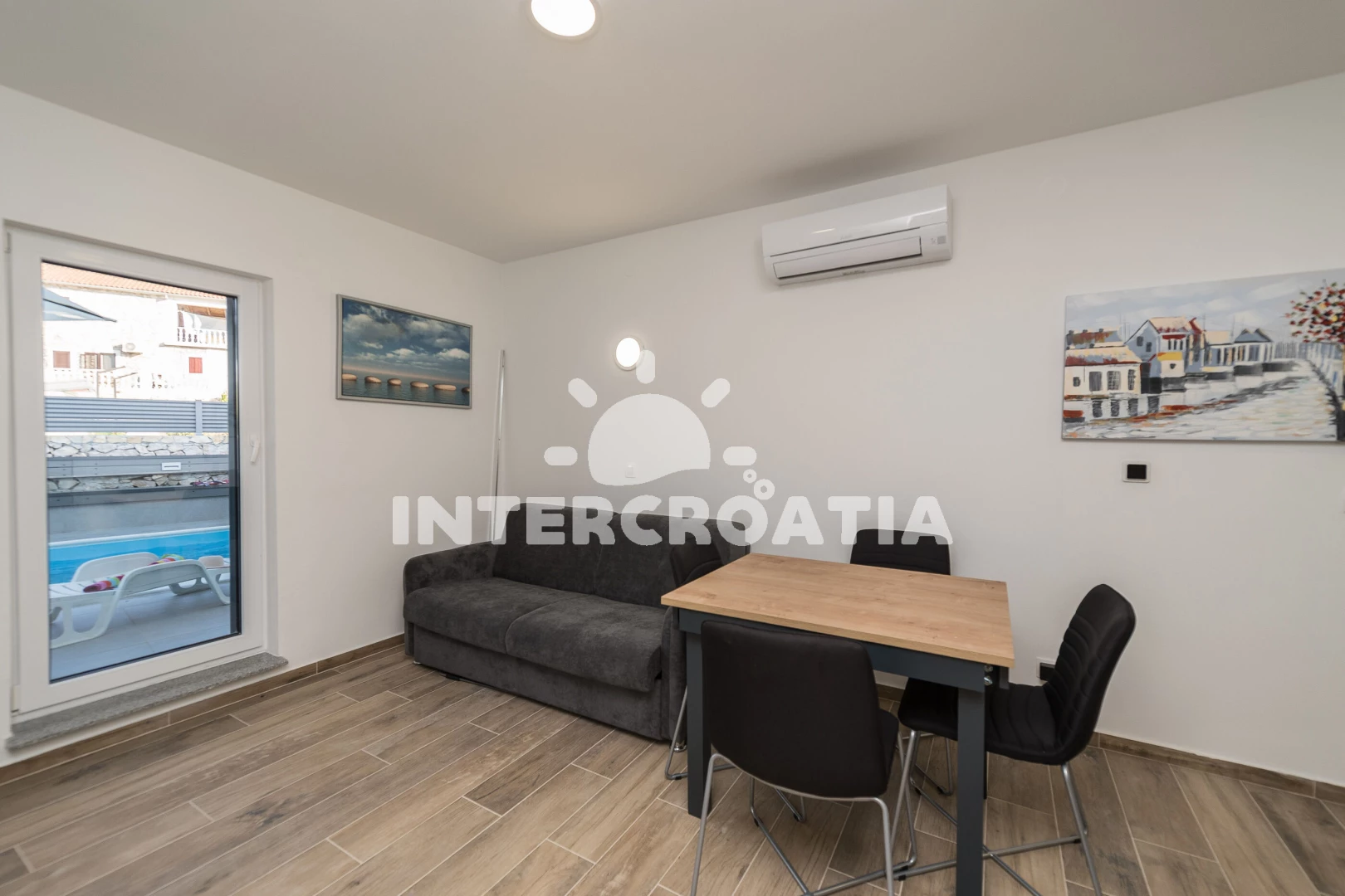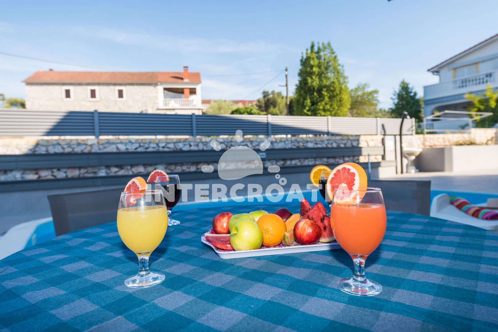 Vzdálenosti: Moře 100 m, pláž 100 m (oblázky), centrum 500 m, veřejná doprava 1 km, supermarket 1 km, lékárna 1 km, ambulance 1 km, restaurace 1 km, trajekt (Zadar) 5 km, letiště (Zadar) 15 km, park Plitvice 35 km,