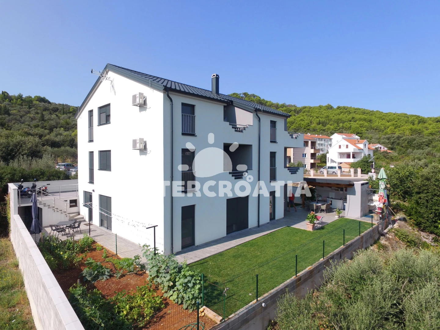 Vzdálenosti: Moře 130 m, pláž 200 m (písek), půjčovna kol 10 m, bar 200 m, restaurace 200 m, supermarket 500 m, centrum 700 m, pošta 700 m, čerpací stanice 1,5 km, trajekt (Preko) 1,5 km, banka 1,5 km, lékárna 5 km, veřejná doprava 5 km, směnárna 5 km, ambulance 5 km, letiště (Zadar) 13,8 km, park Plitvice 20 km,