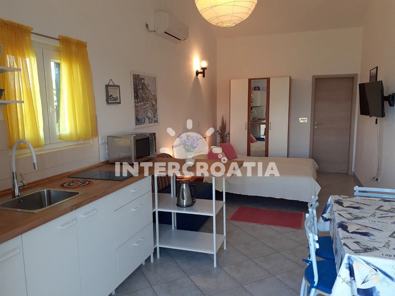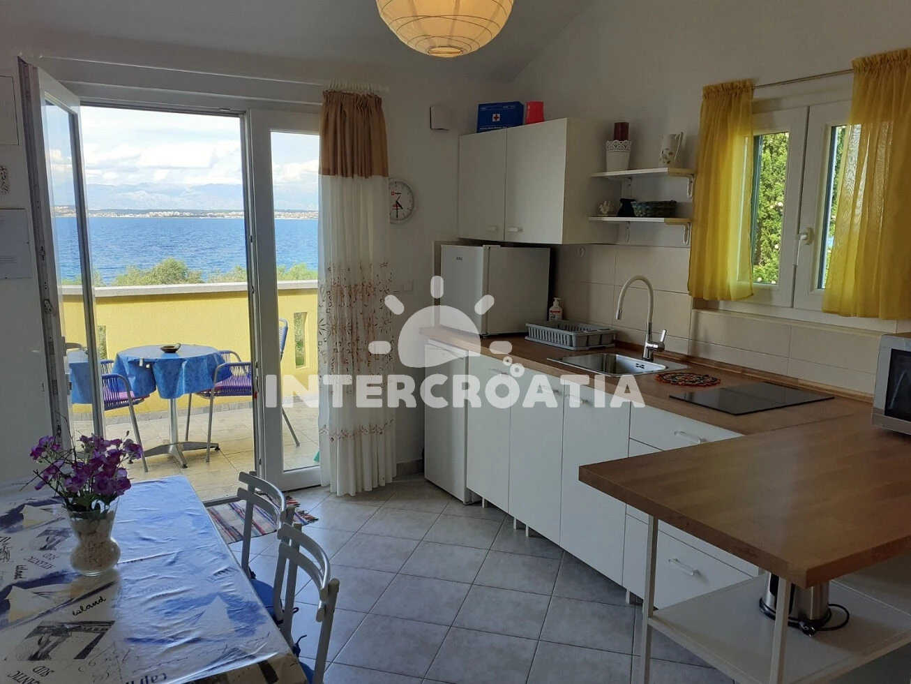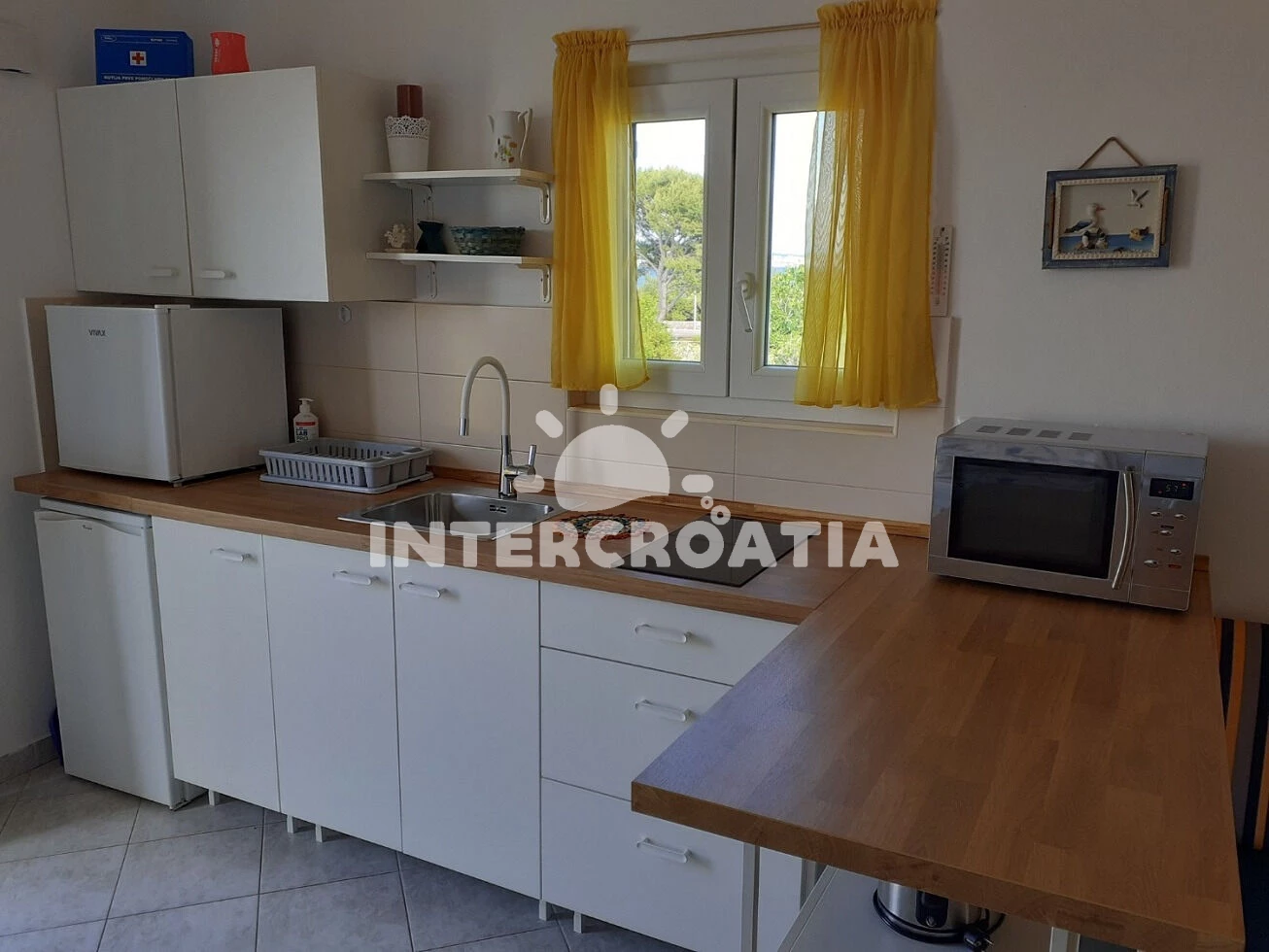 Vzdálenosti: Moře 30 m, pláž 50 m (skalnatá a oblázková), centrum 500 m, supermarket 500 m, restaurace 500 m, veřejná doprava 1 km, trajekt 2 km, ambulance 3 km, letiště 12 km,