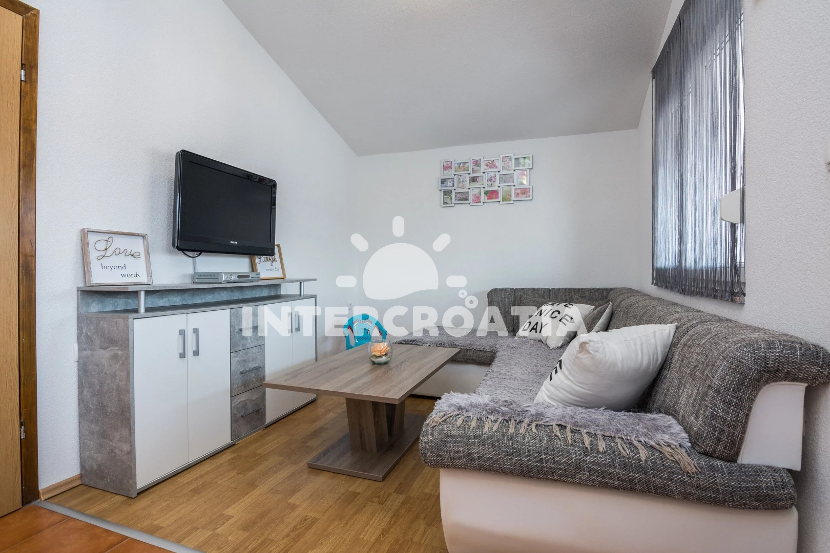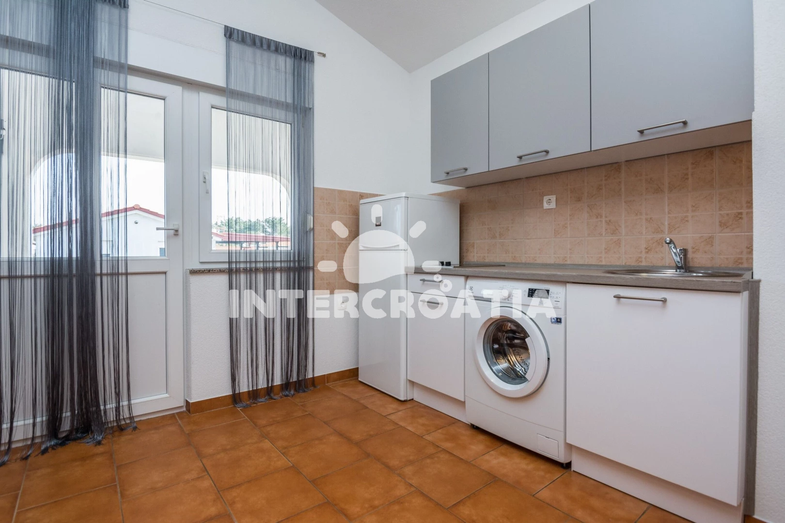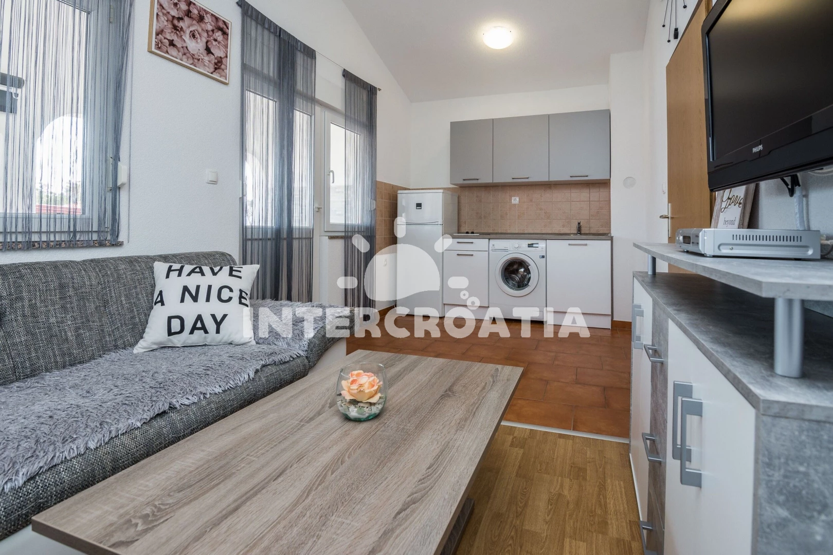 Vzdálenosti: Moře 450 m, pláž 450 m (oblázková a betonové desky), restaurace 450 m, bar 450 m, směnárna 500 m, potápění 500 m, lékárna 500 m, veřejná doprava 500 m, centrum 500 m, ambulance 500 m, supermarket 500 m, pošta 500 m, půjčovna kol 500 m, diskotéka 1 km, čerpací stanice 3 km, banka 30 km, trajekt (Zadar) 30 km, marina 30 km, letiště (Zadar) 35 km,