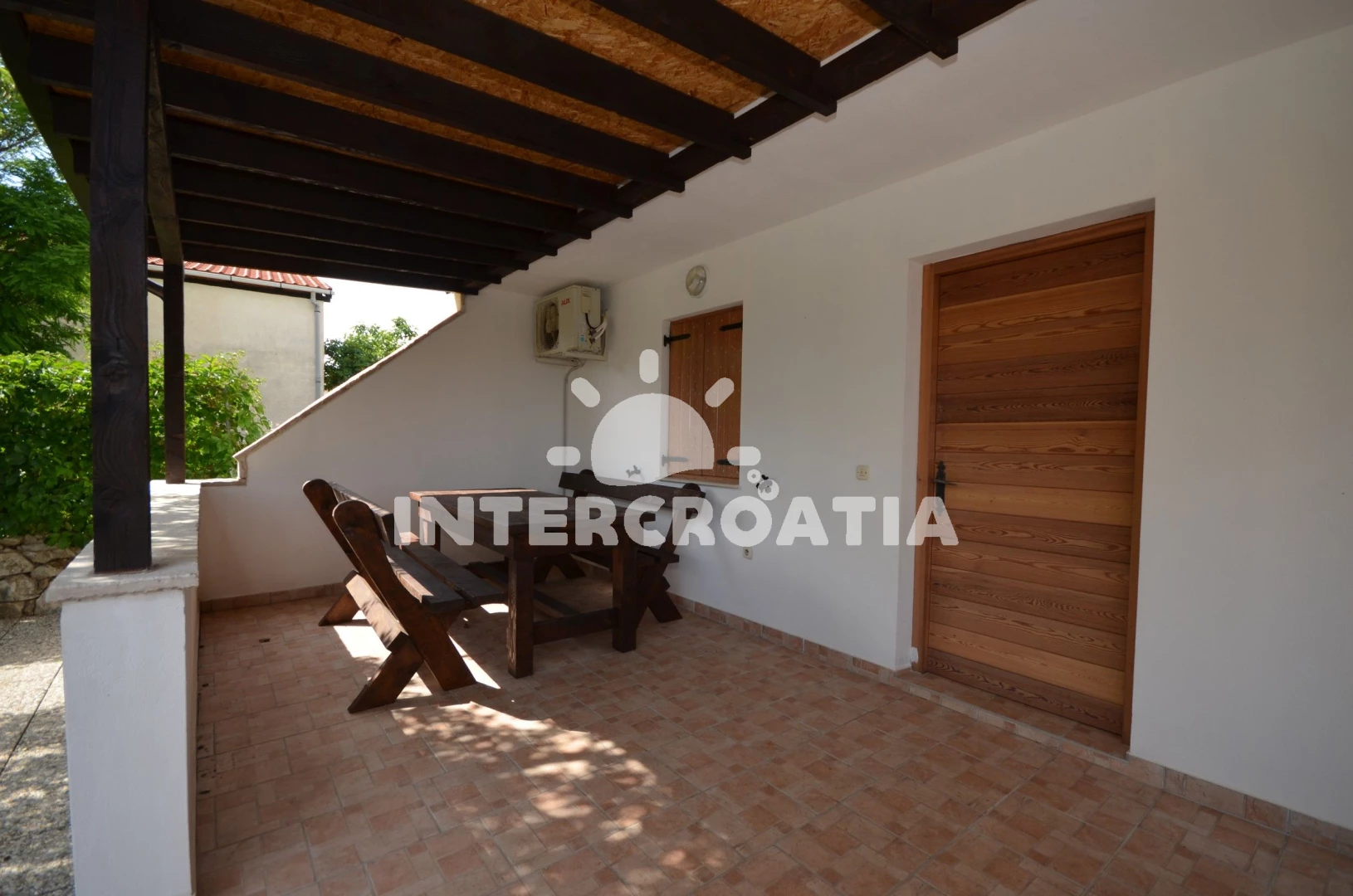 Apartmán se nachází 700 m od moře a pláže. Pláž je oblázková a betonové desky. Apartmán disponuje bazénem s lehátky pro ubytované hosty. U objektu je k dispozici společná zahrada s posezením a grilem. Parkování je před domem.