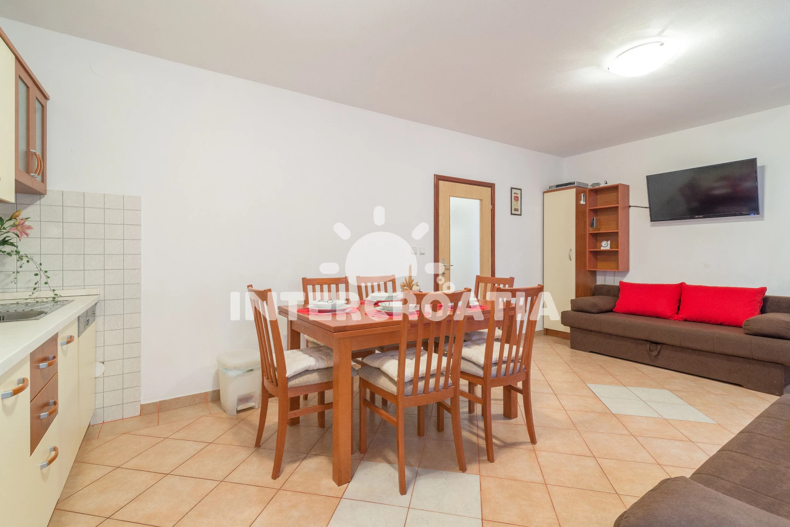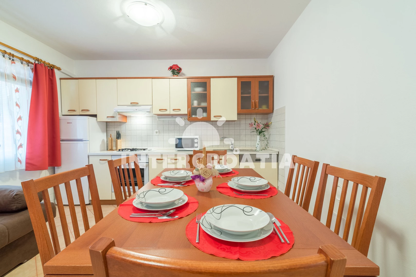 Apartmán se nachází 150 m od moře a pláže. Pláž je oblázková a větší kamení. U objektu je k dispozici společná zahrada s posezením a grilem. Parkování je před domem.