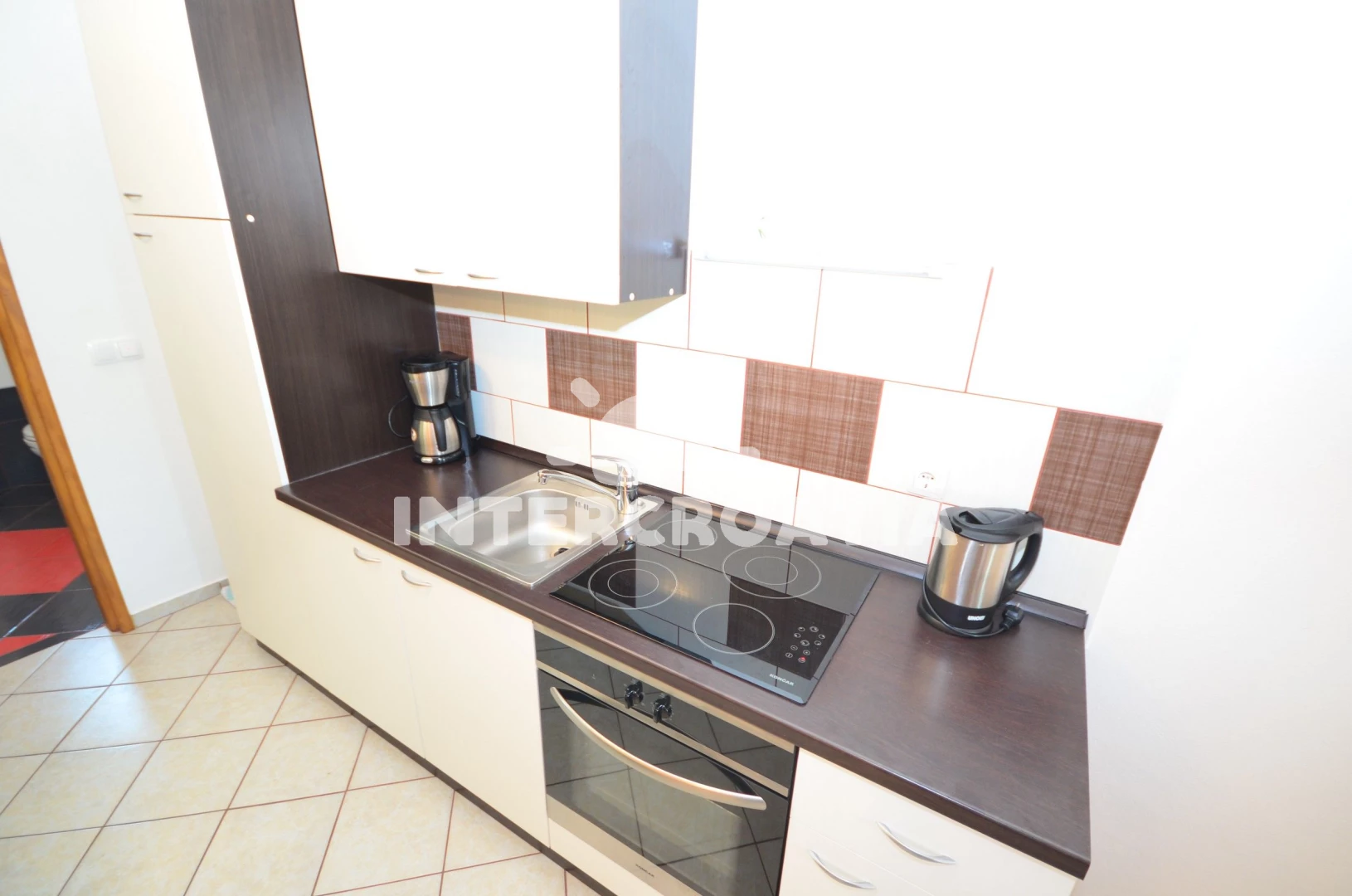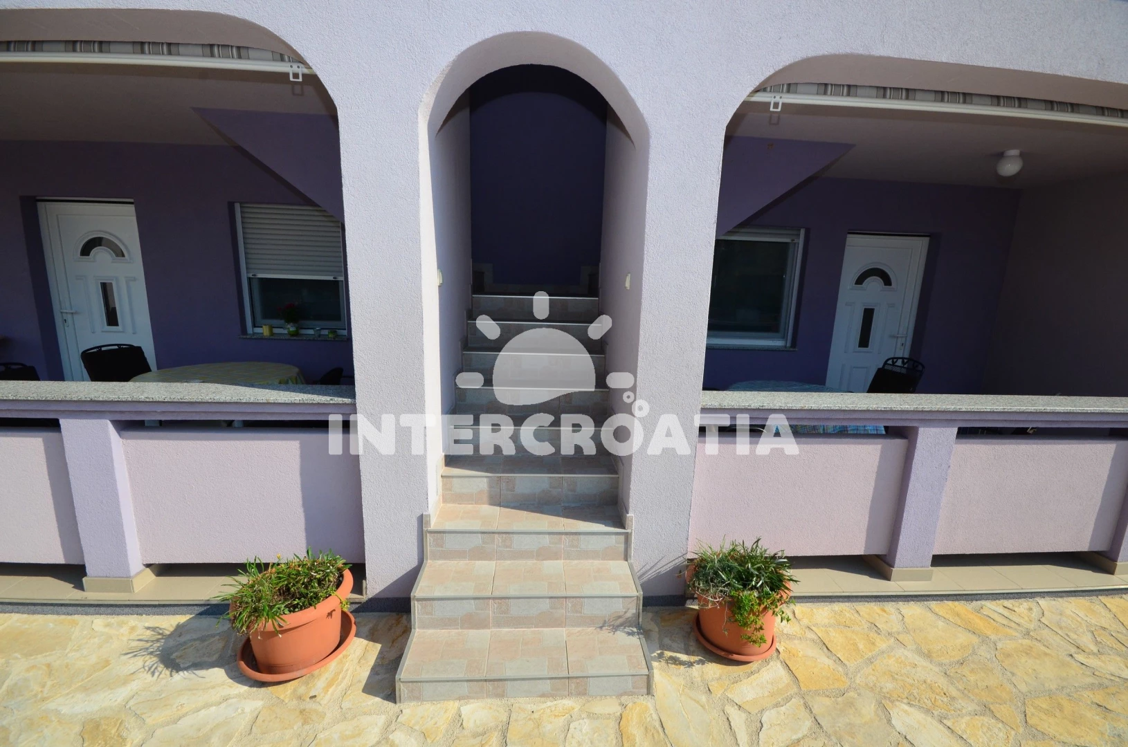 Apartmán se nachází 400 m od moře a pláže. Pláž je oblázková a betonové desky. U objektu je k dispozici společná zahrada s posezením a grilem. Parkování je před domem.