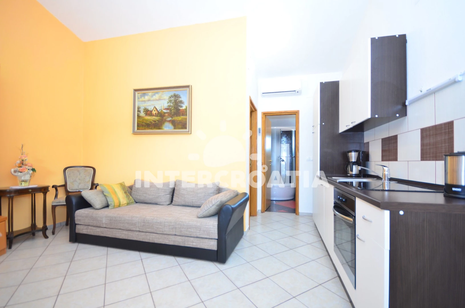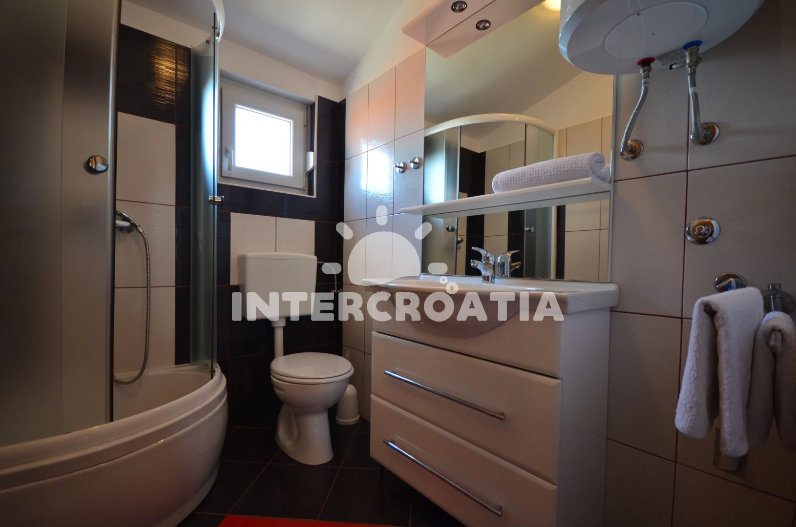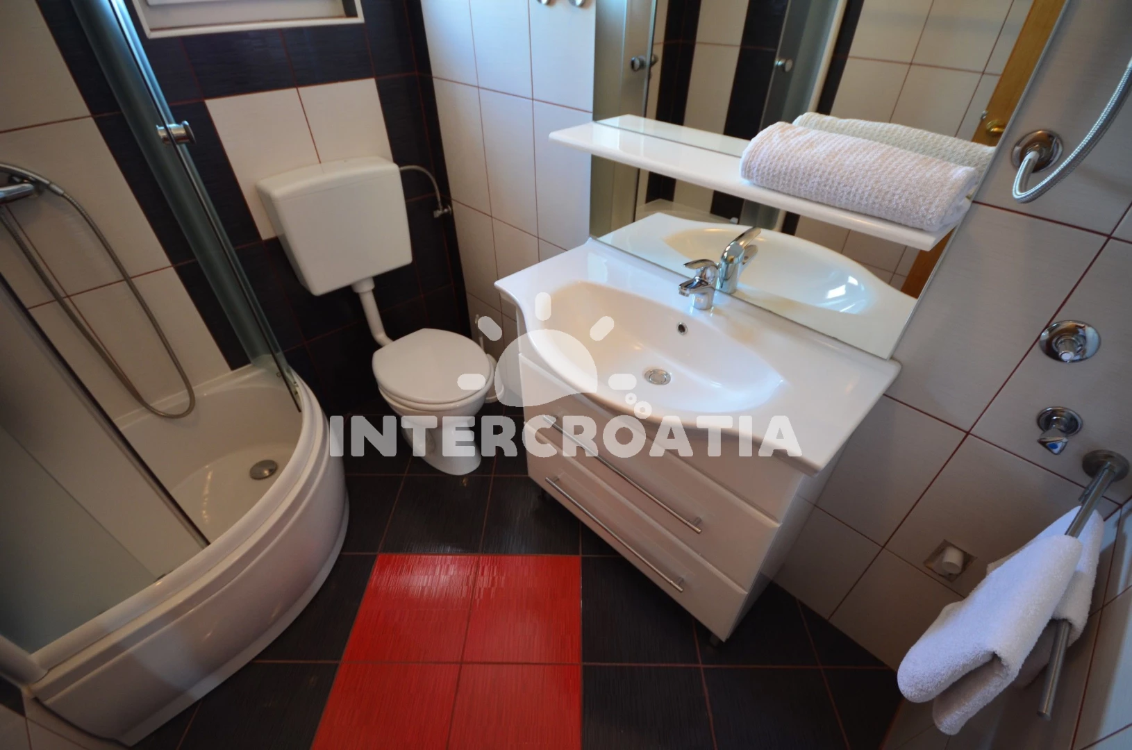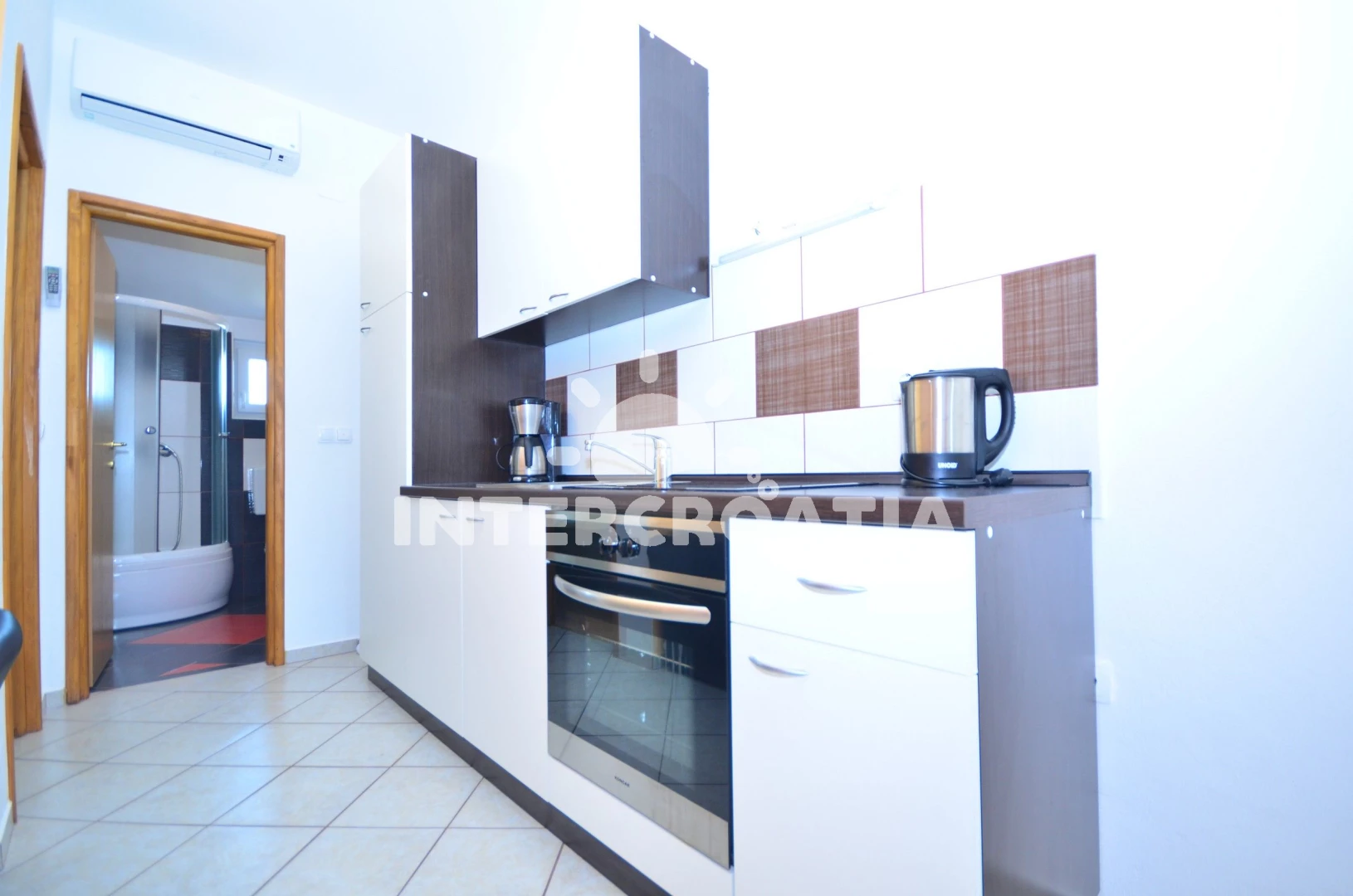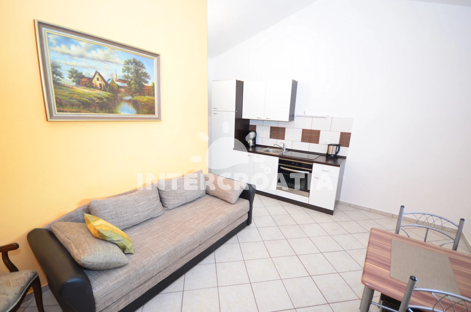 Vzdálenosti: Moře 400 m, pláž 400 m (oblázková a betonové desky), supermarket 250 m, čerpací stanice 1 km, potápění 2 km, restaurace 2 km, bar 2 km, pošta 2 km, centrum 2 km, směnárna 2 km, ambulance 2 km, lékárna 2 km, veřejná doprava 2 km, diskotéka 3 km, muzeum 11 km, trajekt (Zadar) 30 km, letiště (Zadar) 35 km, park Plitvice 150 km,